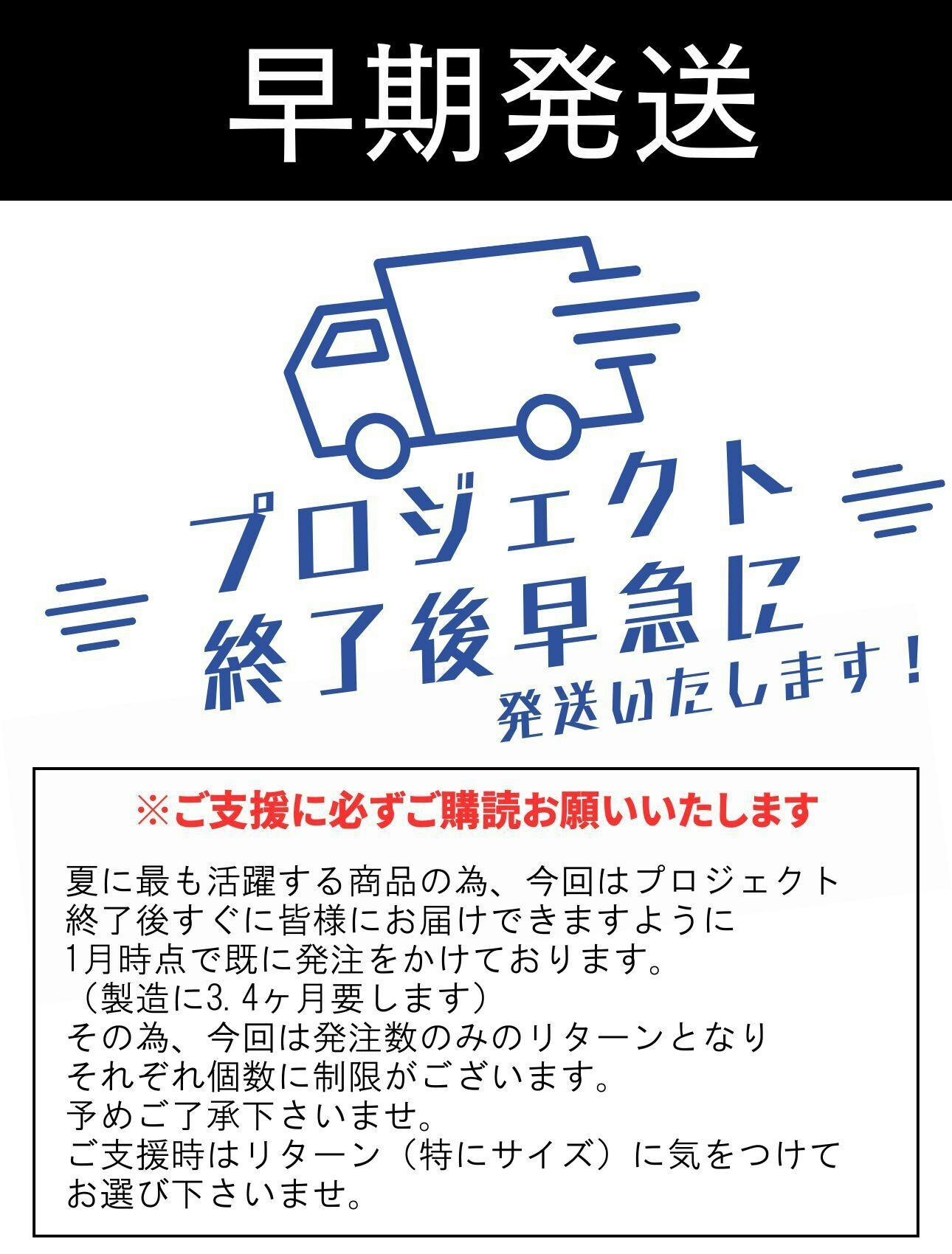 ●キャンセル・返品: 当プロジェクトは「All-in型」の為、お申込み完了をもって契約が成立いたします。その為、お客様都合による返品・キャンセルはできませんのでご注意ください。尚、製品到着後に破損や初期不良がある場合には交換させていただきますので「メッセージで意見や問い合わせを送る」から、または納品書記載の連絡先までお問い合わせください。