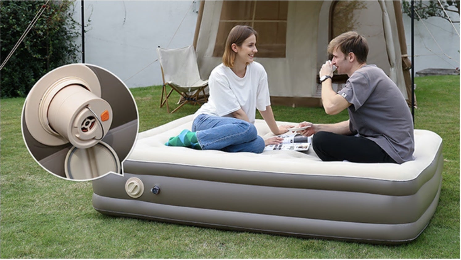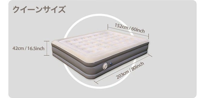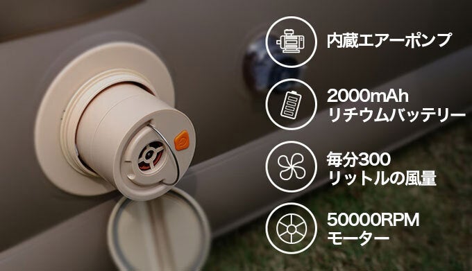 AeroGOGOの高性能なポンプが内蔵できる特別な仕様になっておりますので、電源いらずでどこでもベッドを膨らませることができます。