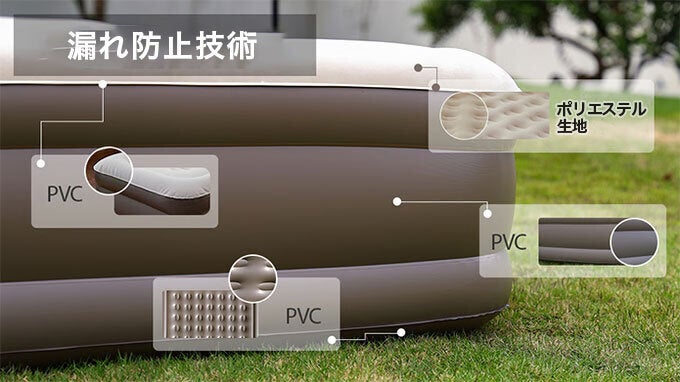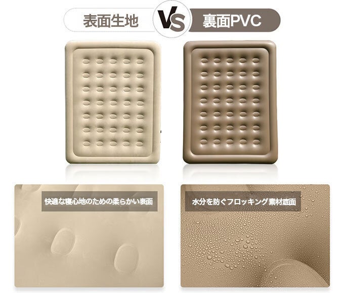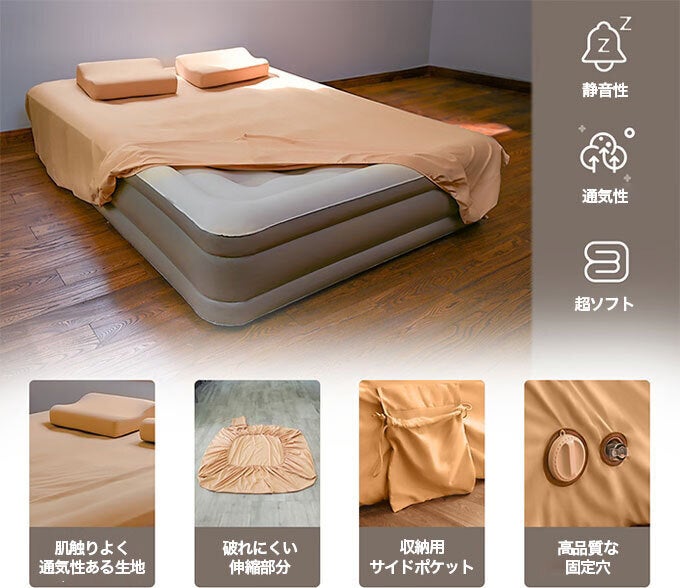 また、ベッドの底には滑り止めがあり、木製またはタイル張りの床でもエアマットレスが動くのを防ぎます。