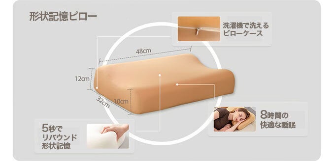 この枕も人間工学に基づいたデザインの高品質な形状記憶で作られています。