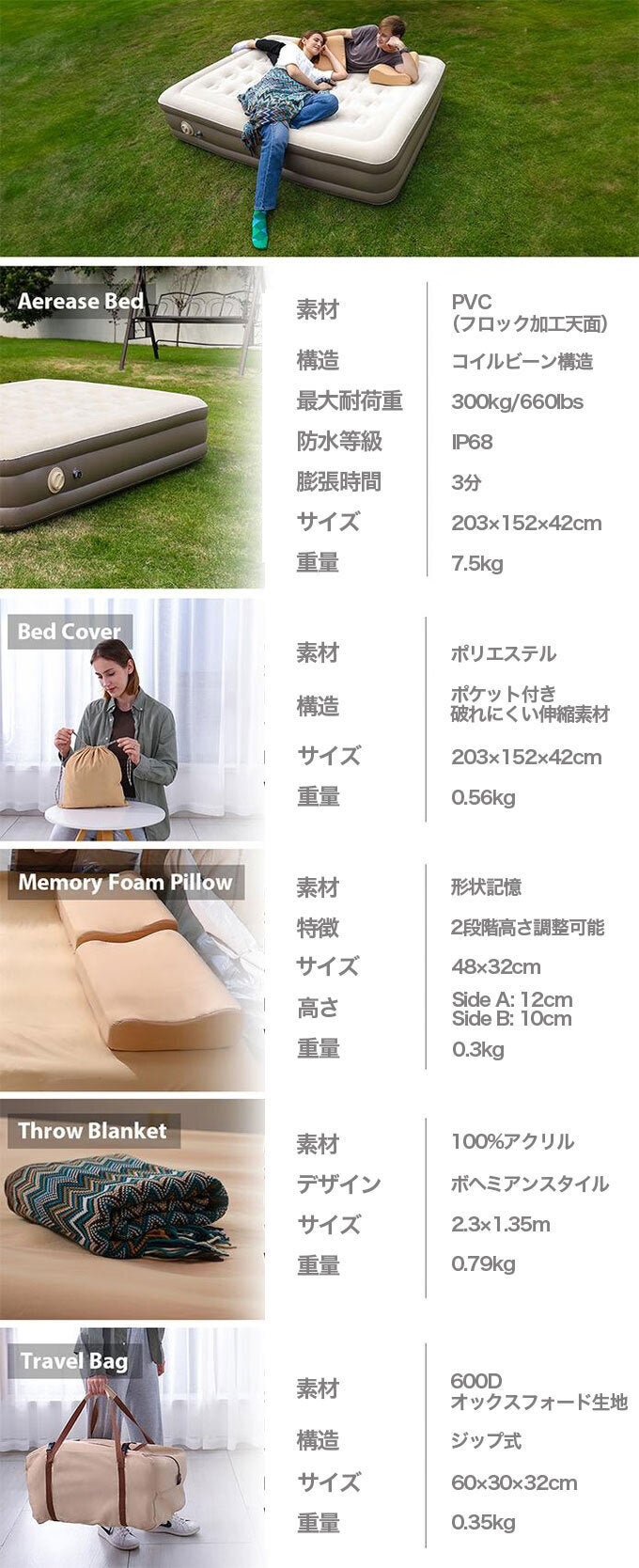 「持ち運びやすさ」と「寝心地」を両立した商品です