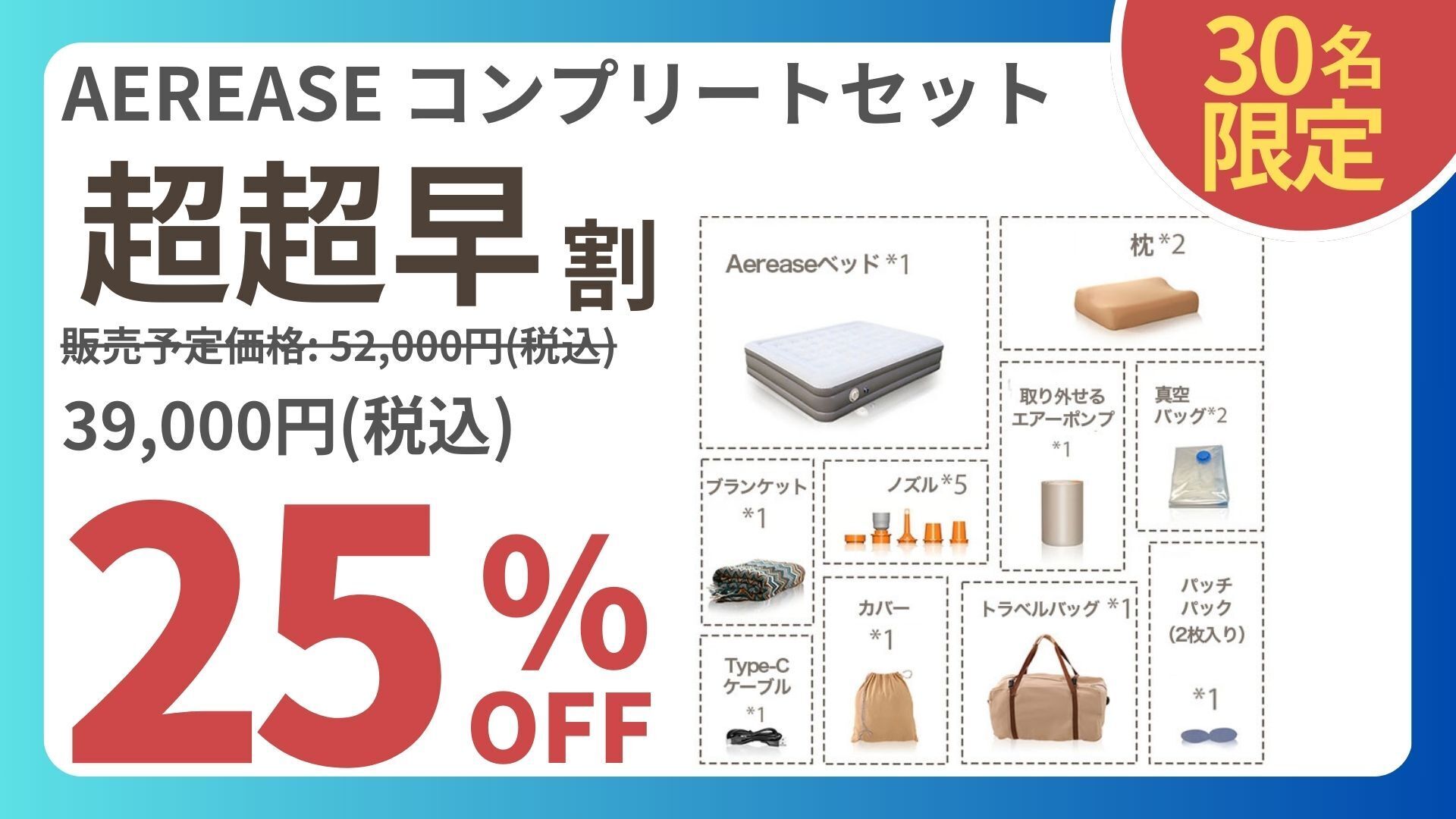 2025/01/09 17:30こんばんは。AeroGOGOJPです。AereaceBedのキャンペーン終了まで、残り6日となりました。AeroGOGOは15年間、エアポンプを考え続けてきました。そこで、思いついたのが、高性能のポンプを活用した、、、『 空気を抜く力を活用して 小さく収納できる 』ということです。エアベッドを普段使いする場合でも、エアポンプの強さは大事ですが、、、収納をする場合は、「どれだけ小さく収まるか」も重要になります。AereaceBedはエアポンプの力を利用して、・ベッド・枕・ブランケット・シーツその全てをまとめ、トラベルバッグ一つに詰め込むことが可能です。のこり6日間、もしお悩みの方がいらっしゃいましたら、ぜひご検討ください。また、不明点がありましたら、ぜひご質問もお待ちしておりますので、引き続きAeroGOGO JPをよろしくお願いします。 もっと見る