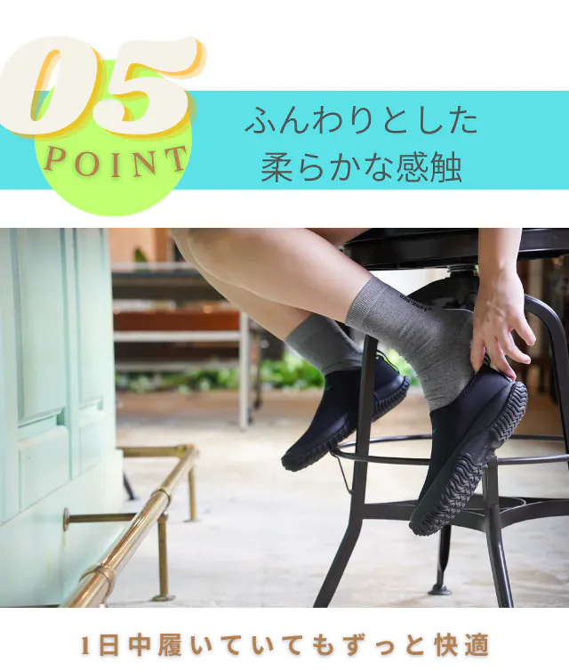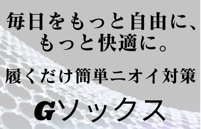 足のニオイ対策に、消臭スプレーやインソールはもう必要ありません。Gソックスを履くだけで、簡単に足元のケアが完了します。抗菌防臭Gソックスが、日常の手間を省き、よりシンプルで快適な生活を実現します