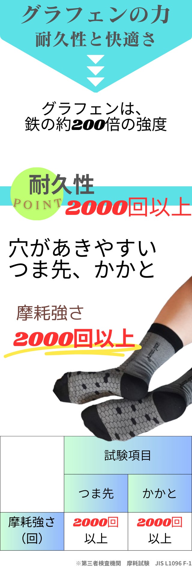 2000回以上の摩耗試験でGソックスは破けていません!