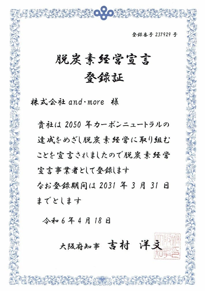 大阪府が、2050 年のカーボンニュートラルの実現に向けて脱炭素化を促進している「脱炭素経営宣言」に登録されました。CO2削減や省エネ、カーボンニュートラルの達成に向け取り組んでまいります