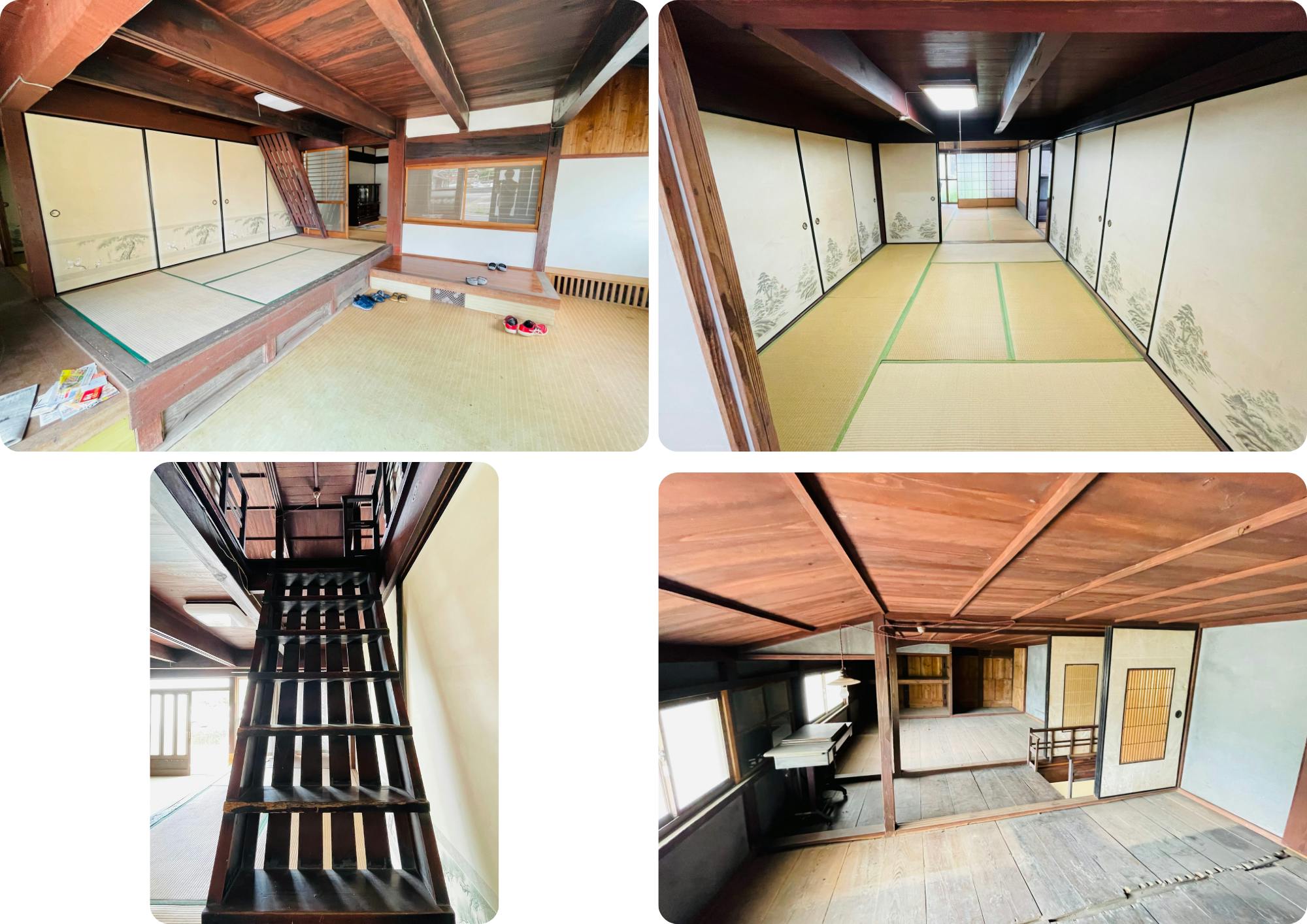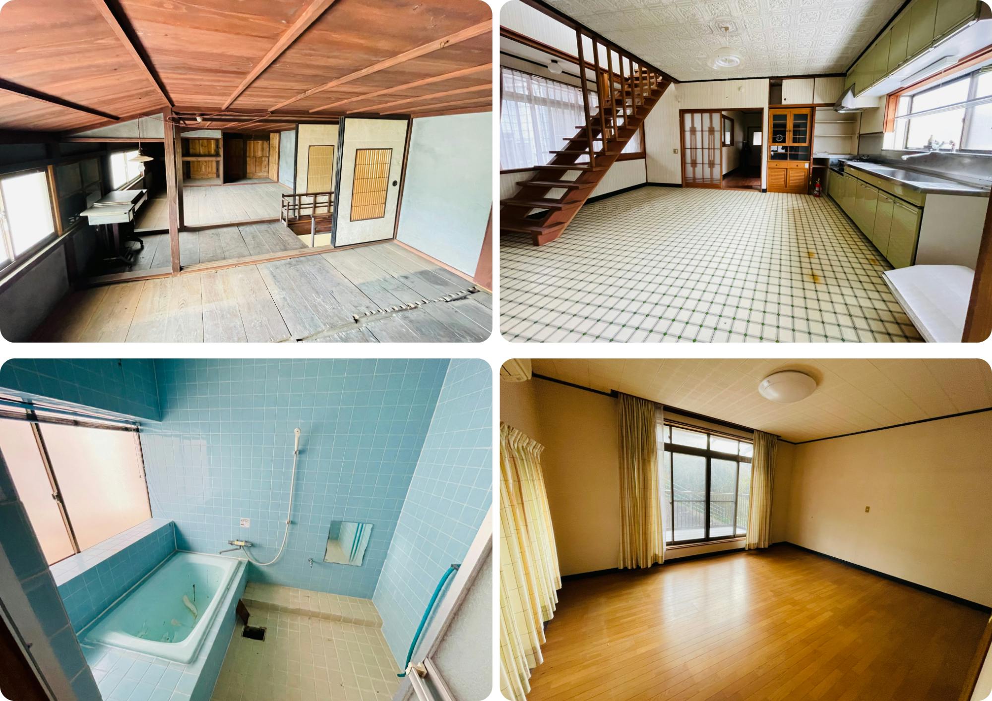 (左下)改修予定の浴室 (右下)2階の宿泊者さま用のプライベートルーム