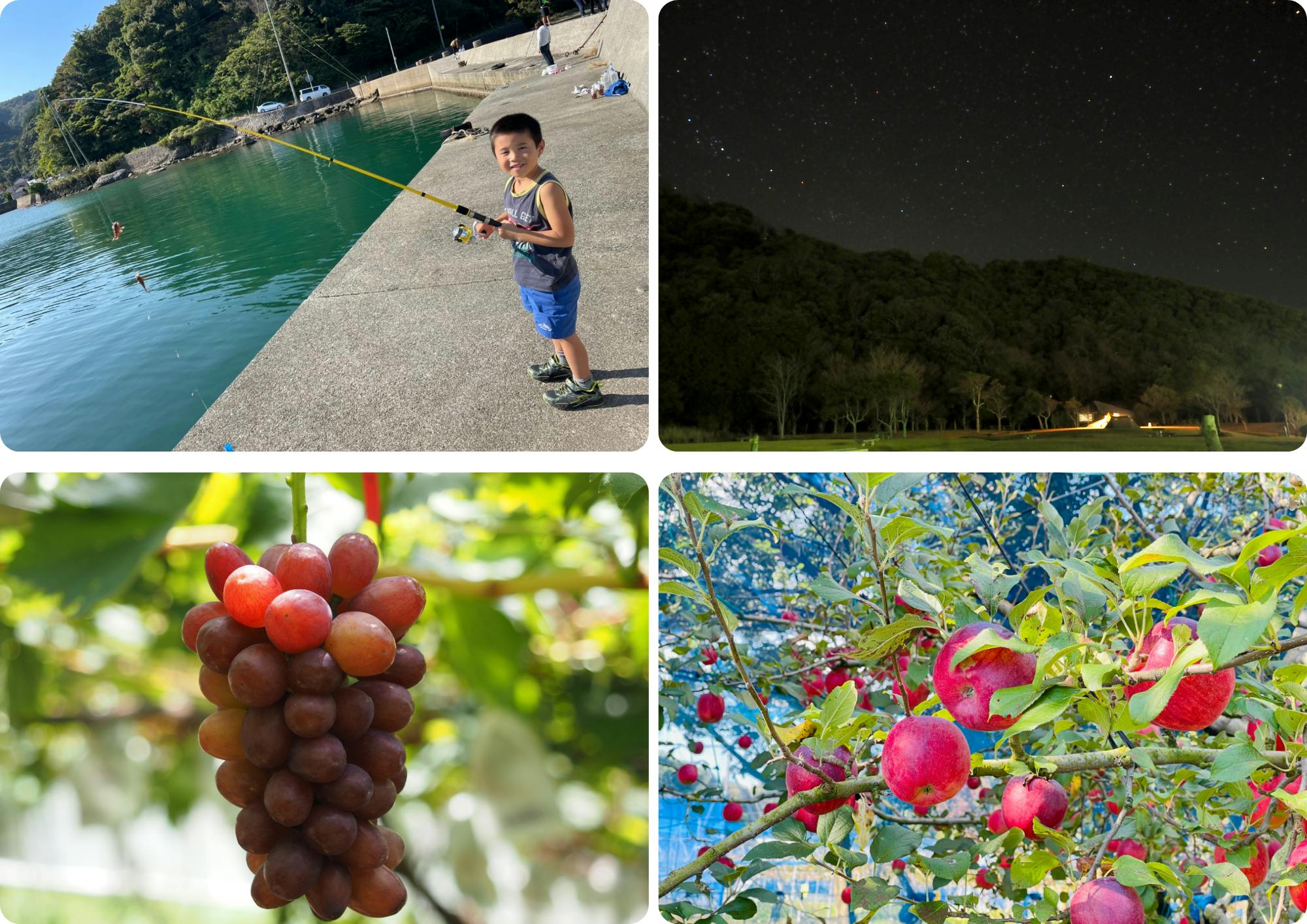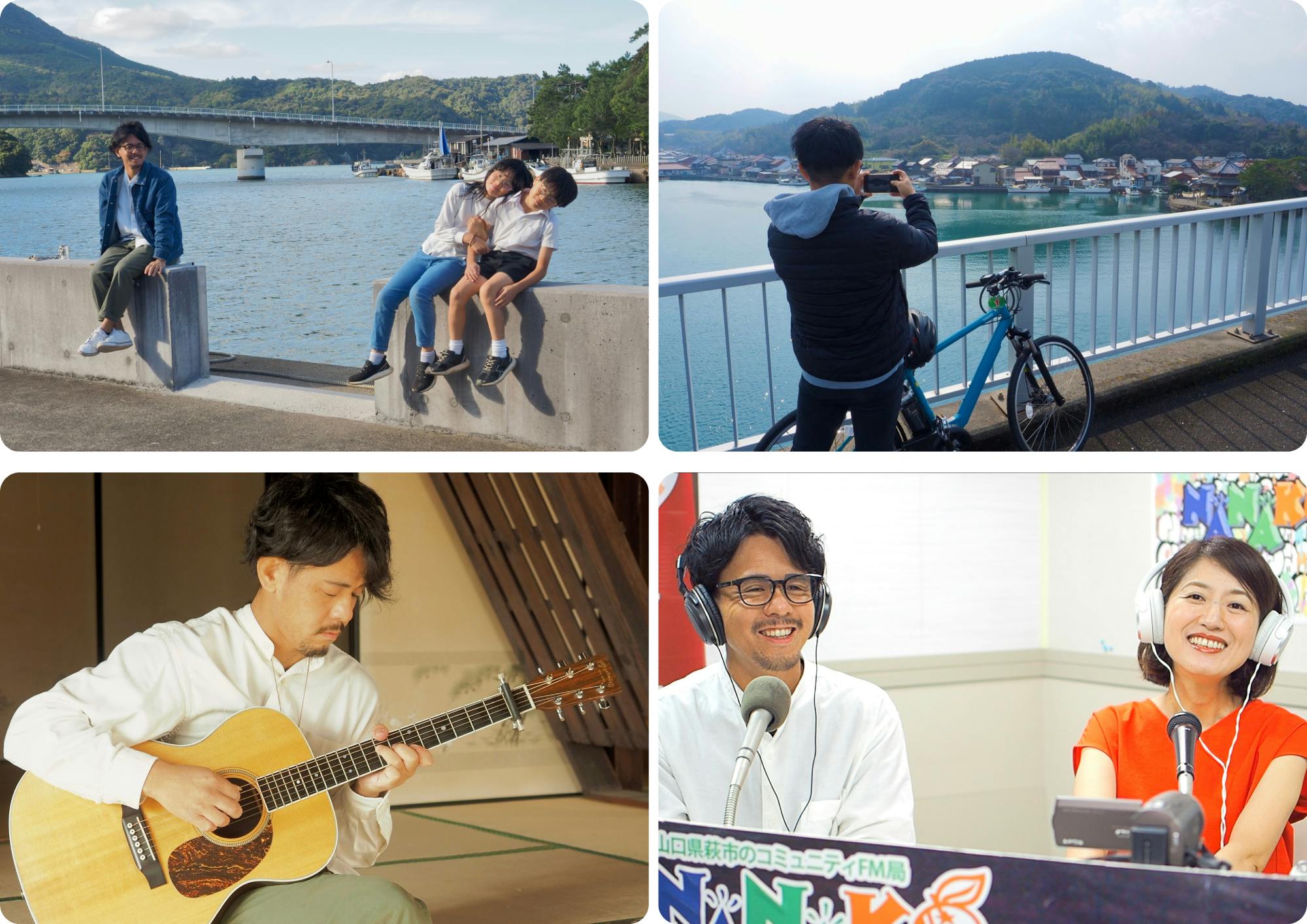(左上)家族で移住してきました (右上)江崎大漁橋からは良い景色が見れます