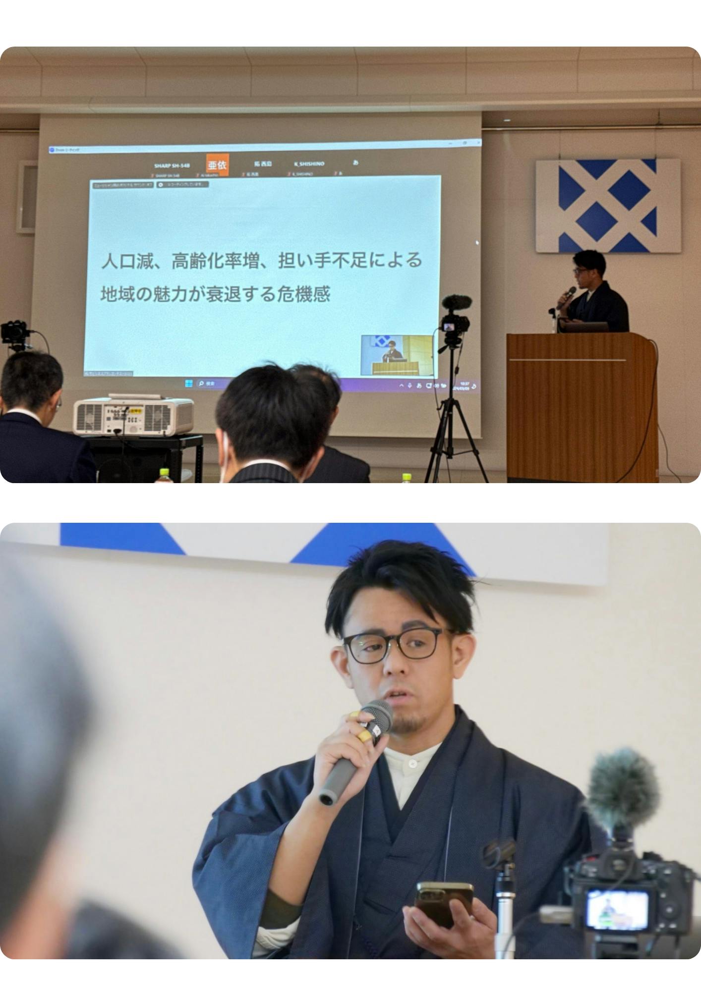 そしてその描いたプランを多くの方に伝えたいと思い「萩市ビジネスプランコンテスト2023」に応募。書類審査を通過して、24年3月3日に開催された最終審査の場でプレゼンをしました。