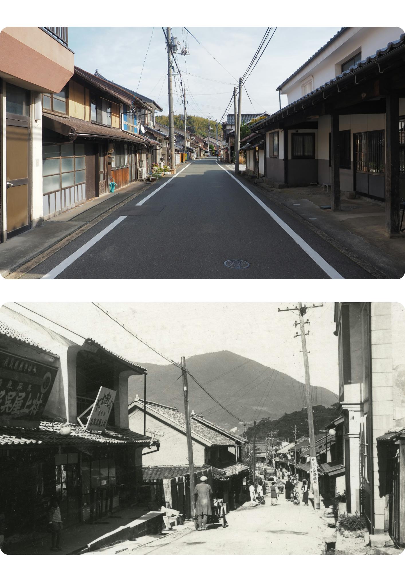(左下)どこか懐かしい気持ちになる江崎のまち並み