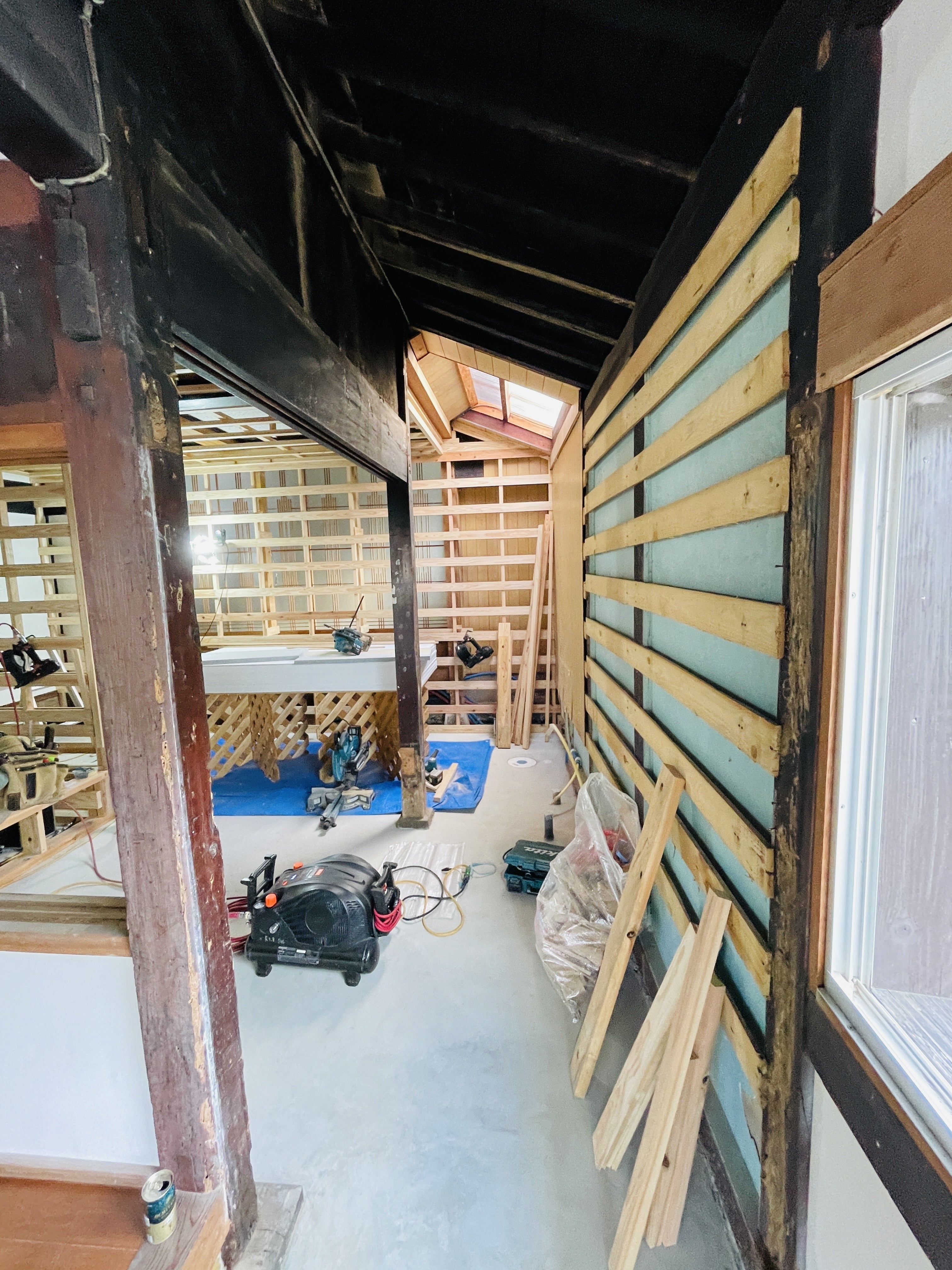あっという間に土間ができ、新たに壁と天井と下地を作成