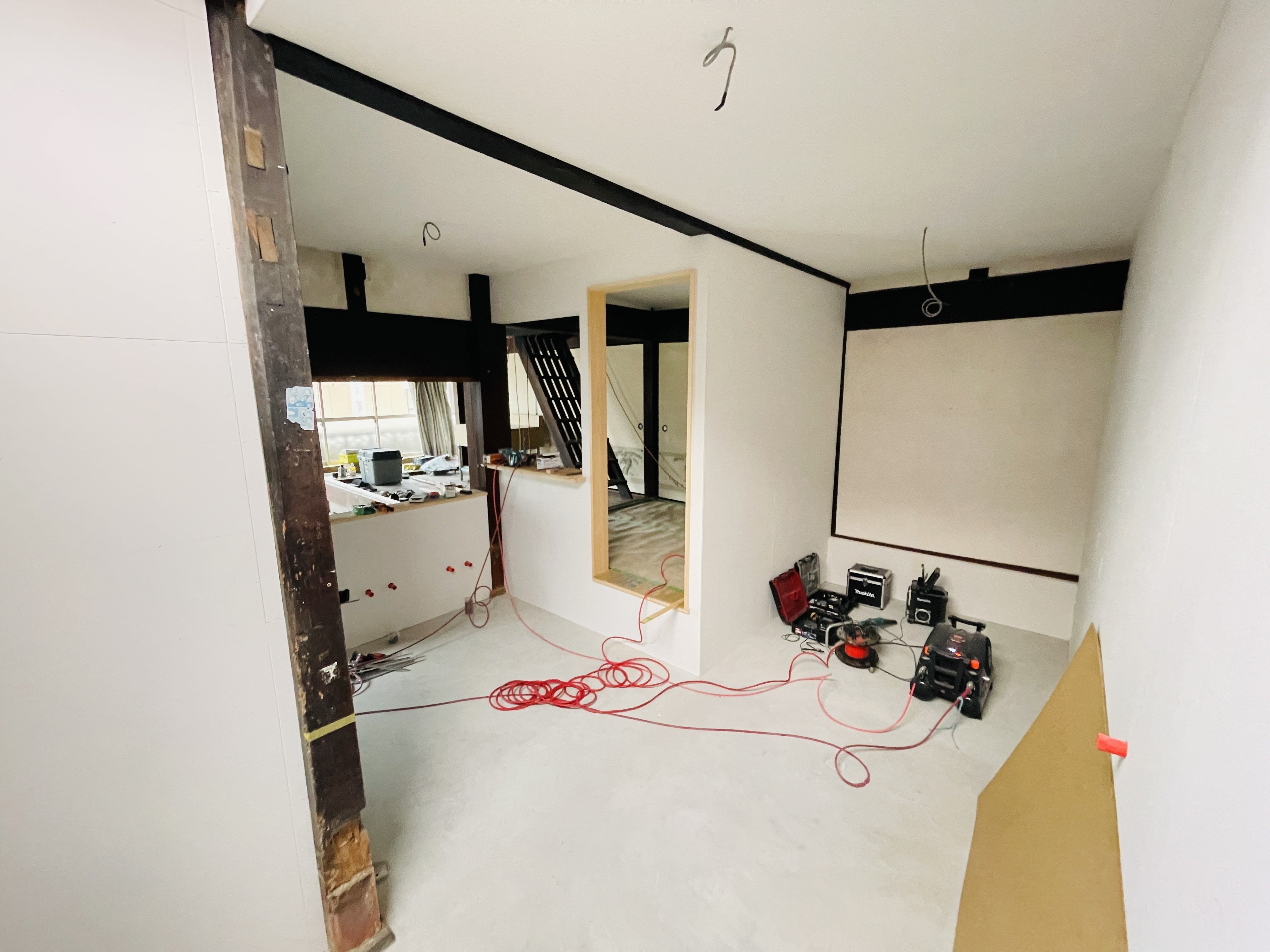 もともと畳の和室だった部屋をカフェスペースの厨房へ改装中です。
