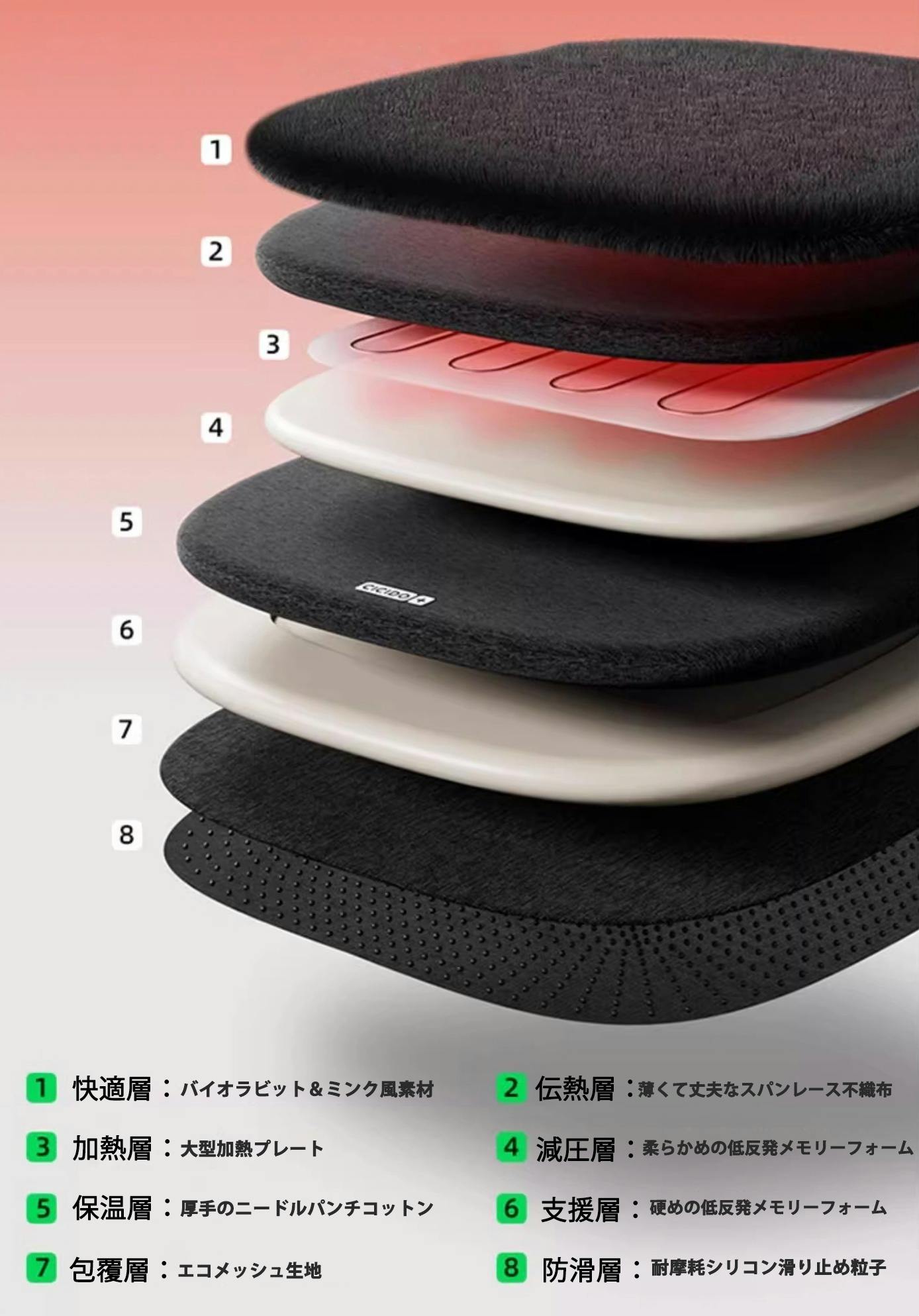 冬の冷たい座席対策に。この二重構造の加熱座布団は、従来の一重タイプよりも柔らかく暖かさが増しています。寒がりの方のために特別に設計されました。