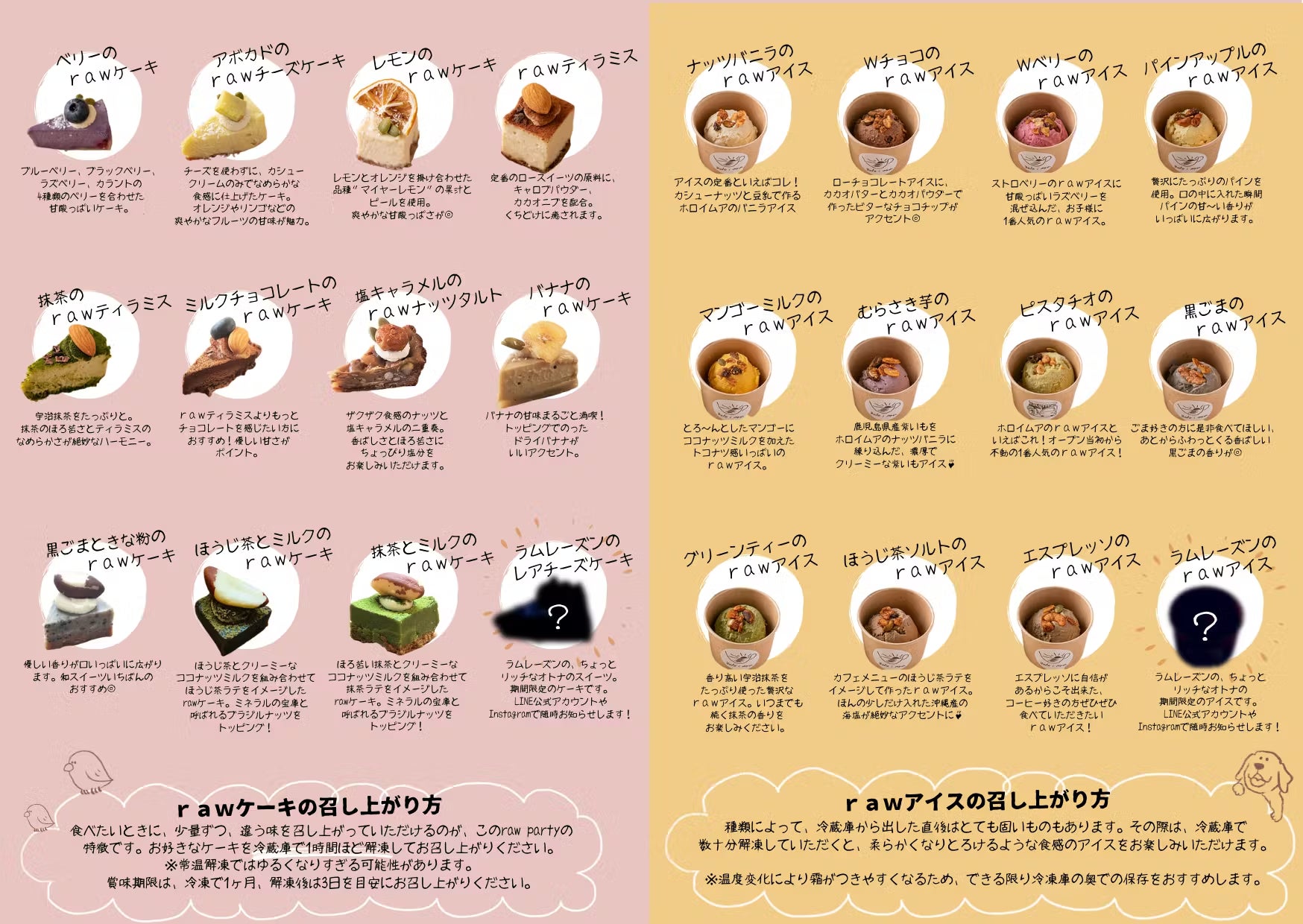 2025/01/26 12:00こんにちは。Cafe Holo i Mua の長尾です。あっと言う間に残り5日ですね!この間にはたくさんのご支援、ご声援、温かいお言葉もたくさんいただき..たくさんの方に支えられているホロイムアを実感中。。ありがとうございます。本日は、リターンでローケーキをお選びいただいたご支援者さまにお送りするフレーバー12種類をご紹介いたします。///////① ベリーのRawケーキブルーベリー、ブラックベリー、ラズベリー、ストロベリーの4種類のベリーを使った甘酸っぱいケーキです。お子さま一番人気の商品です!➁アボカドのRawチーズケーキチーズを使わずにカシュークリームのみでなめらかな食感に仕上げたケーキ。オレンジやリンゴなどの爽やかなフルーツの甘みが魅力です。③レモンのRawケーキレモンとオレンジを掛け合わせた品種“マイヤーレモン”を使用。酸っぱ過ぎず爽やかな甘酸っぱさで人気です!→レモン好きの僕としてはどこまで酸っぱくして大丈夫なのか、とても試作に時間を使ったケーキです。ただその甲斐あって?全フレーバーの中でダントツの1番人気です!④Rawティラミススーパーフードと呼ばれるキャロブパウダー、カカオニブを配合!このくちどけの良さはローケーキならではです。⑤抹茶のRawティラミスこちらもスーパーフードと呼ばれるキャロブパウダー、カカオニブを配合してお作りしております。抹茶のほろ苦さとカシュークリームの甘味、そしてこのくちどけと、この組み合わせは..もぉもぉ至福の時間です。⑥バナナのRawケーキ常連のお客様から″朝に食べたいローケーキ″としてご要望いただき誕生したケーキ!先日 初めてローケーキを食べて下さったお客様がこのバナナのケーキの美味しさに感動してくださいました。⑦ミルクチョコレートのRawケーキミルクと言ってもここではココナッツミルクを代用しております。⑧黒ごまきなこのRawケーキ黒ごま×きなこ これはもう鉄板の相性です!WEB限定フレーバー1番人気商品です。⑨抹茶とミルクRawケーキ全12種類のフレーバーの中でこのケーキのくちどけが一番好きと言ってくださるお客様が多数。ありがとうございます!⑩ほうじ茶とミルクのRawケーキこのケーキの試作を通して、お茶と塩の相性の良さを初めて知りました。ここからメニューの幅が大きく広がりました。⑪Rawショコラオランジュ季節限定商品です!″高級チョコレートを食べているような″そう言ってくださるお客様もいらっしゃいました。ありがとうございます。季節限定フレーバーでは僕の一押し商品です。⑫あずきとミルクのRawケーキあんこ好きによるあんこ好きのためのRawケーキです!毎年リピーターのお客様が多数いらっしゃる、冬の季節限定フレーバーです。///////次回はお送りするローアイスのフレーバー12種類をご紹介出来ればと思っています。残りわずかな期間となりましたが、最後までお付き合いどうもよろしくお願いいたします。Cafe Holo i Mua長尾孝浩 もっと見る