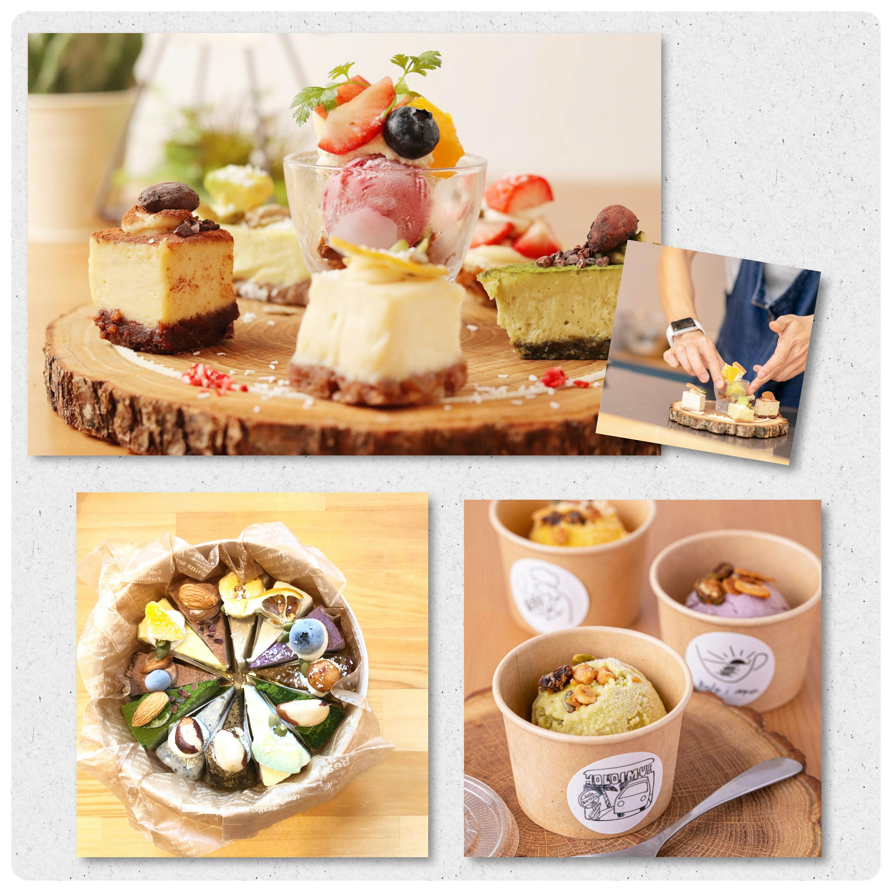 フードコーディネーター、調理師、薬膳アドバイザー、ヘルス&ビューティーフードアドバイザーなどの資格やこれまでの経験を生かし、徹底的に栄養素にこだわりぬきました。ケーキは、カシューナッツやココナッツオイルなどの植物性の素材や、天然甘味料のみを使用しています。アイスは、豆乳やカシューナッツでコクを生み出し、甘味はデーツやアガベシロップを採用しました。