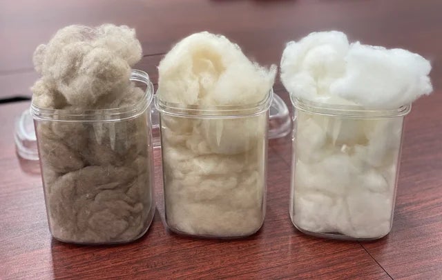 採毛されたカシミヤの毛は、手作業によって丁寧に選別されることで、より質の高い原料となってネックウォーマーになっていきます。