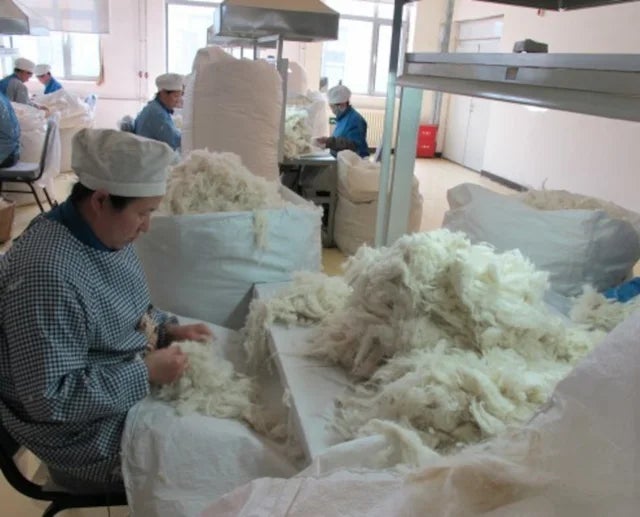 <カシミヤ原毛の選別作業>