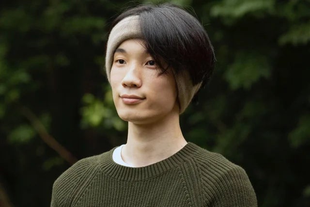 特徴的なのは途中で編み方が変わるデザイン。半分を天竺編み(基本的な編み方)、もう半分をリブ編み(ニットの袖口などに見られるキュッとした編み方)と、途中で編み方を変えています。