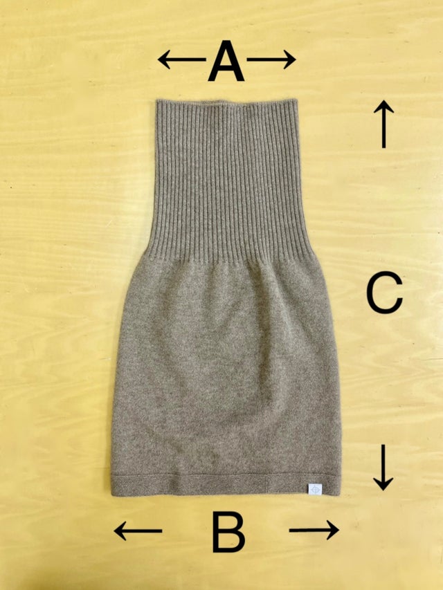 今回のネックウォーマーはあえて一重。折り曲げて二重にした時にちょうどフィットする、縦に長めの仕様にしています。