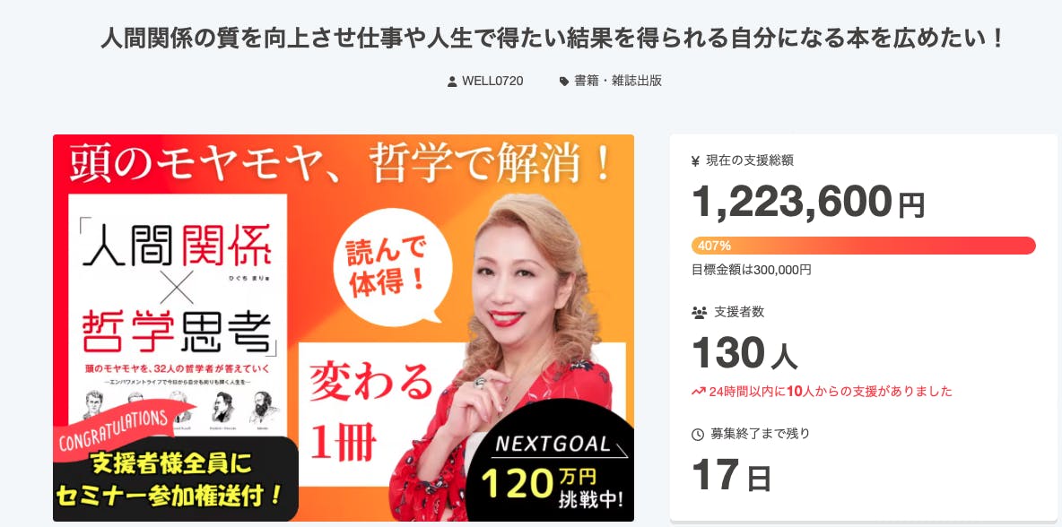 目標の400%、120万円を達成しました!!