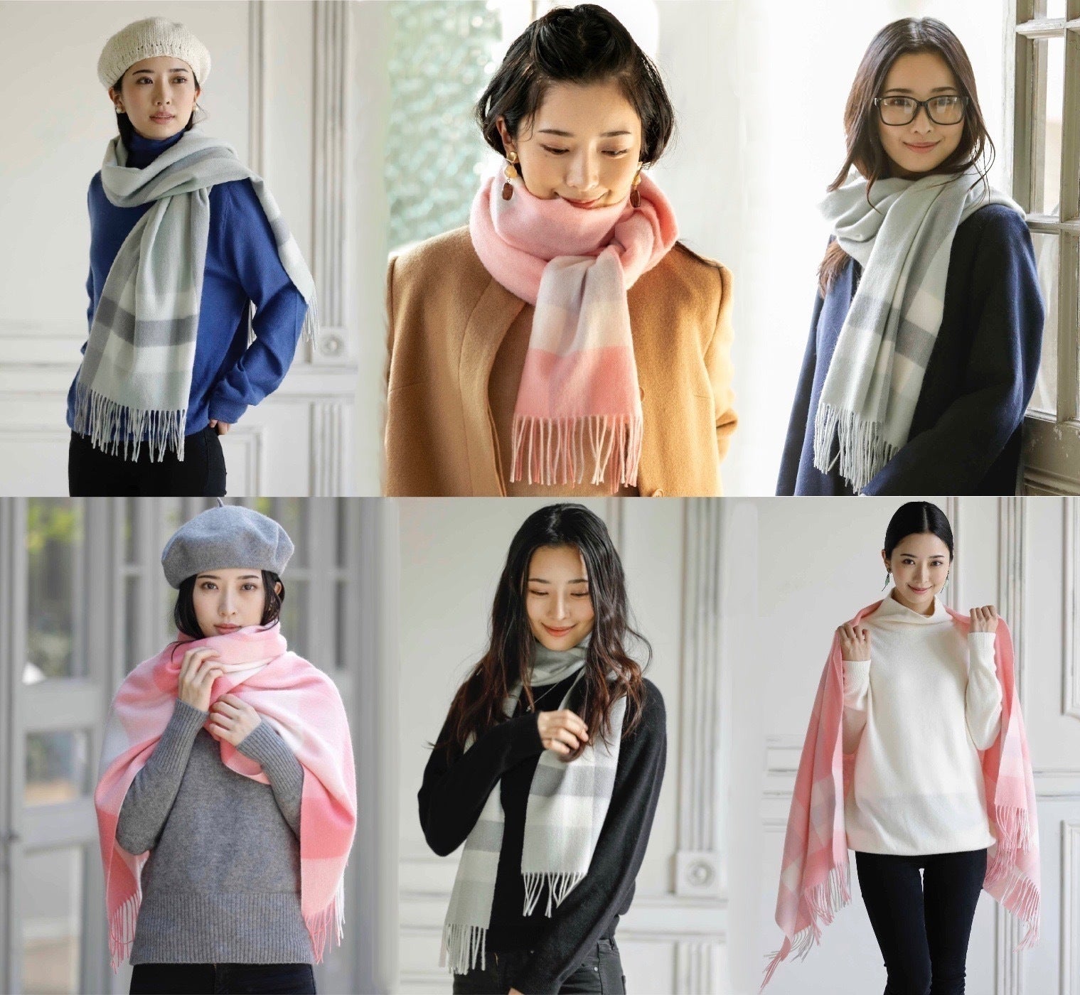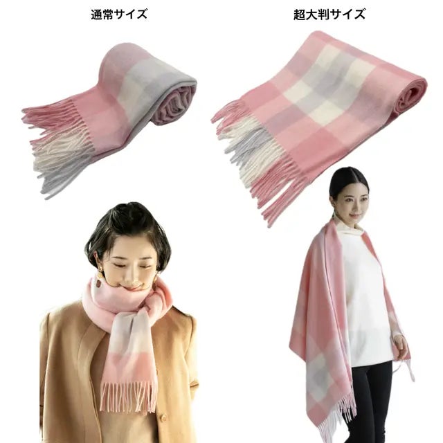 柄は流行に流されないオーソドックスなチェック柄とブロック柄。チェック柄はスコットランドハイランド地方を起源とする人気のタータンチェックがモチーフ。ブロックチェックも同系色のトーン配色で飽きの来ない意匠デザインです。(ブロックチェックは商品サイズに合わせて、ストールの方がマフラーよりも大きな格子デザインとなっています。)