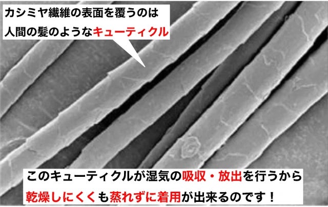 キューティクルがあるから乾燥しにくく、蒸れにくい。