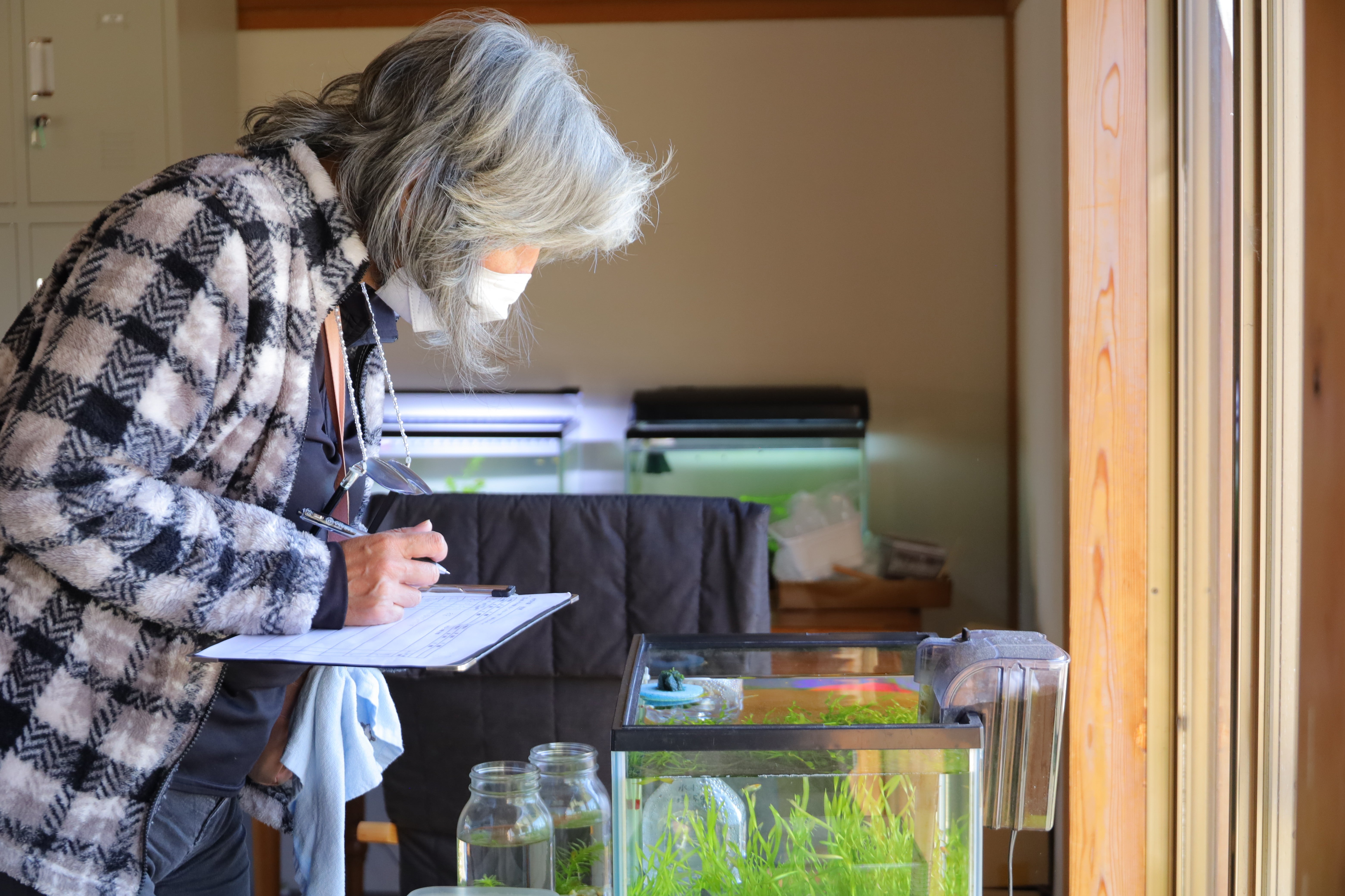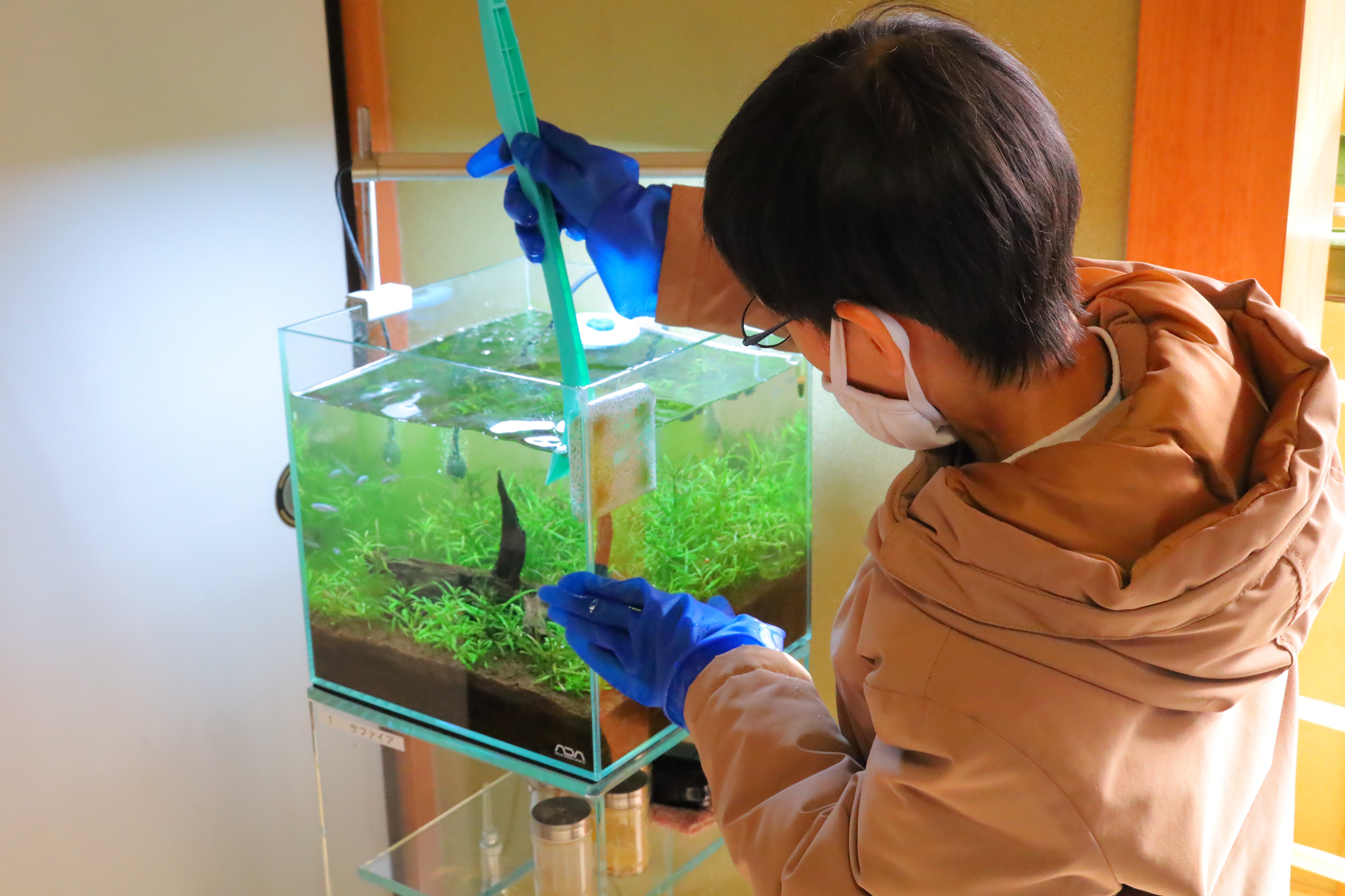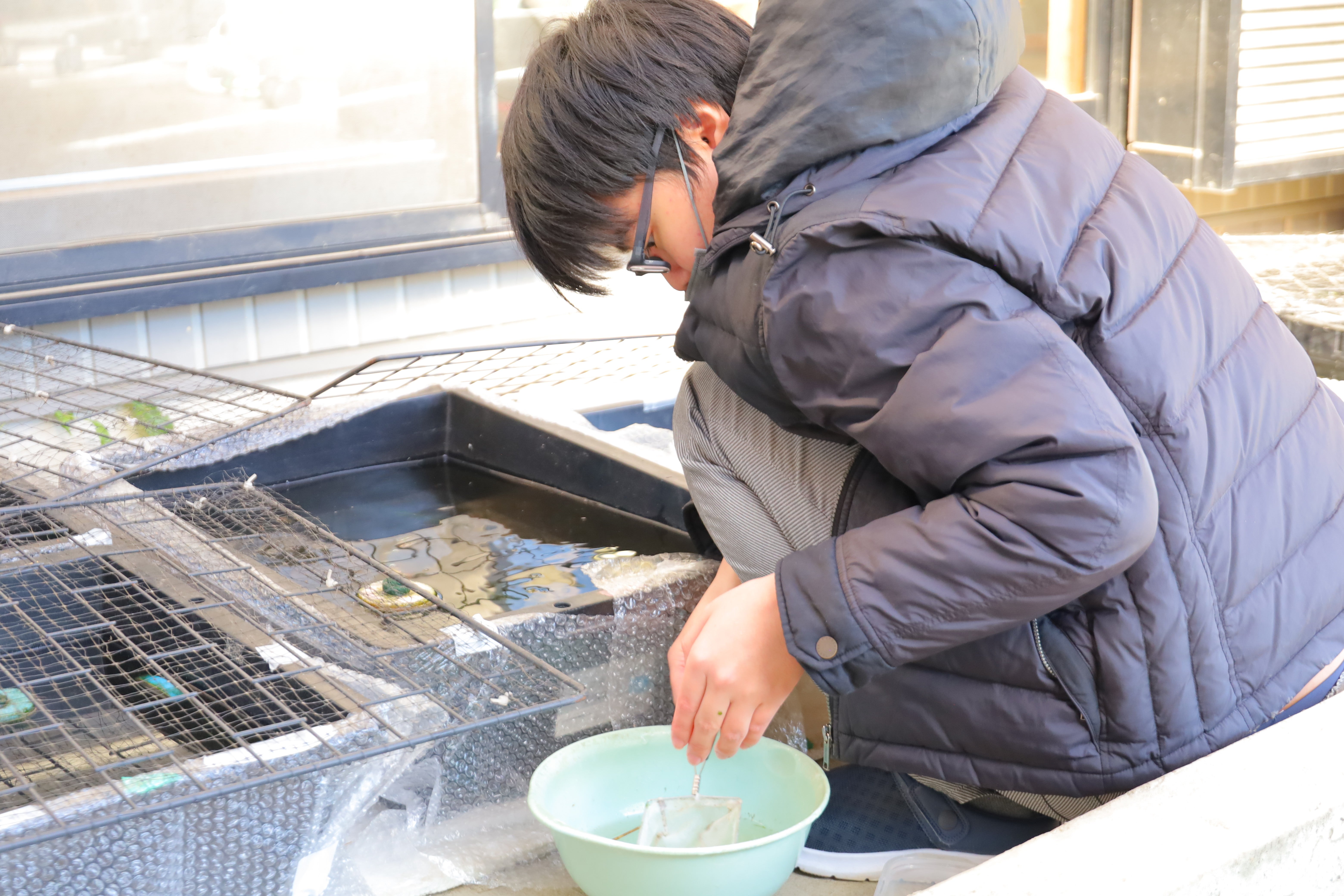利用される方には、一人ひとりが責任を持ってめだかの育成に取り組んでもらえるよう、めだか研修を受けた専門職員が全面的にサポート。