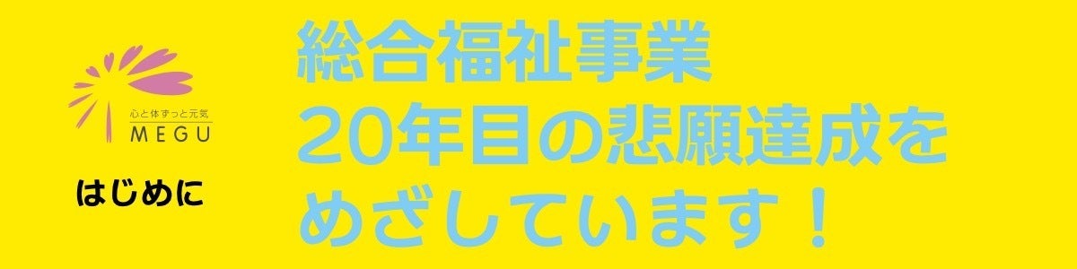 私たち「めぐグループ」は、高齢者向けグループホーム、デイサービス、訪問看護などの分野でサービスを提供し、おかげさまで2025年には創業20周年を迎えさせていただきます。