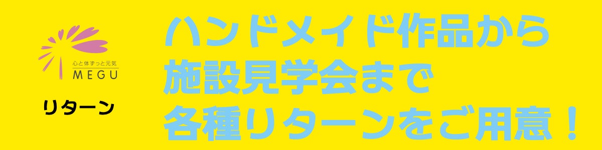 本プロジェクトに賛同してくださった皆さまには、より深く『めぐ就労継続支援B型 加須』を知っていただける見学会や、利用者さんのハンドメイド作品など、さまざまなリターンをご用意いたしました。