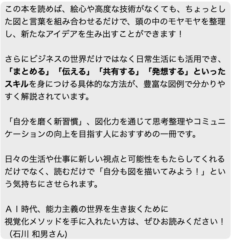 本書はビジネス書というカテゴリーの本ですが、「図化力」はあらゆる年齢層の方に使っていただける内容となっています。