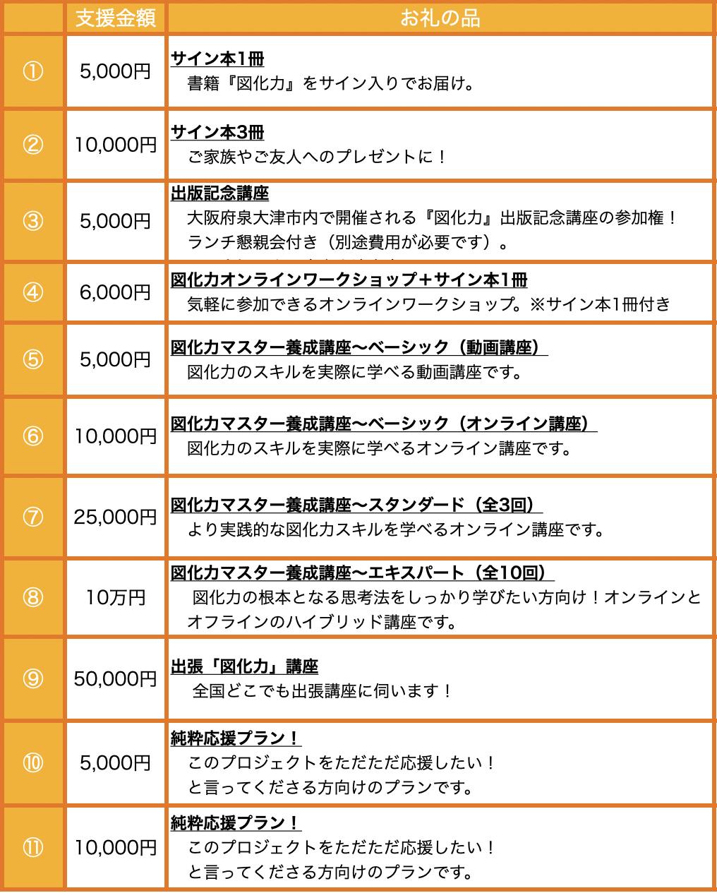 リターンには「図化力」を知ってもらい、学んで活用していただくための講座やワークショップなども用意しています。