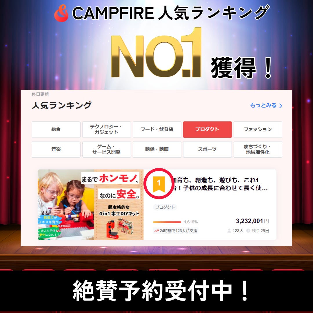 また、おかげさまでランキング1位、初日400万以上の支援額、達成率2,000%を達成することができました!