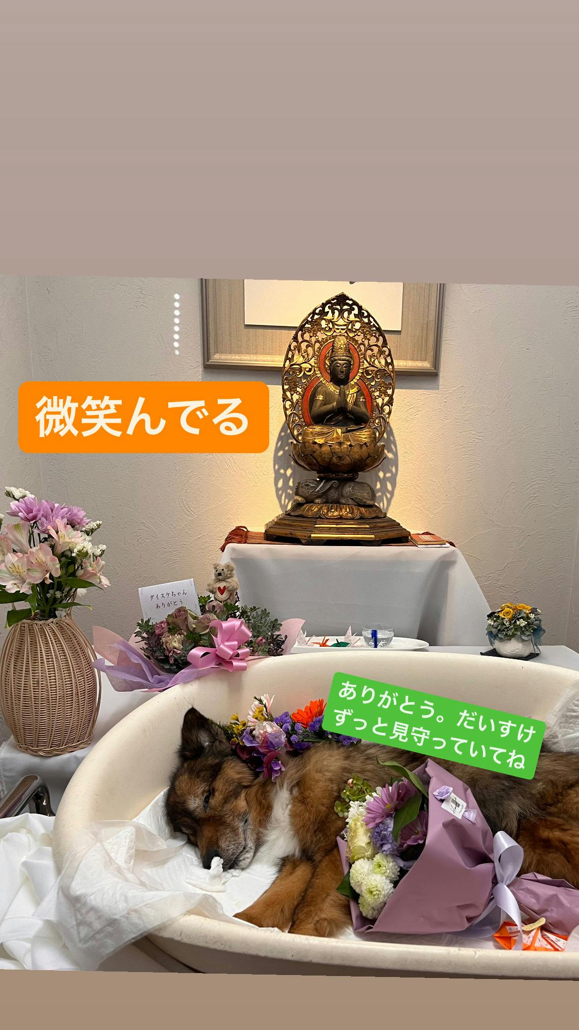 出張などでスタッフが揃わず、荼毘は1月18日まで延期になってました。ボク、パーシャル的?!な、固くならない冷凍保存してもらってたんだよ。今日、もう一度、みんなに会えて嬉しかった。 たくさんのお花をみんなから頂いて、花でボクの体が見えなくなるまで飾ってもらえました。