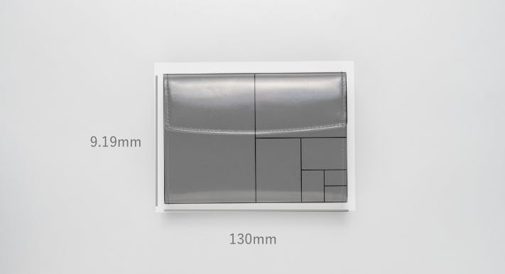 サイズはパスポートとほぼ同じサイズ。カードが12枚入る財布でありながらこれだけコンパクトなのは、キプリスのもつハニーセル®︎構造だからこそ。