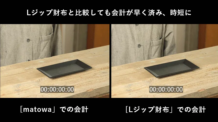 似たサイズの一般的な財布と会計のスピードを比較してもこの通り。