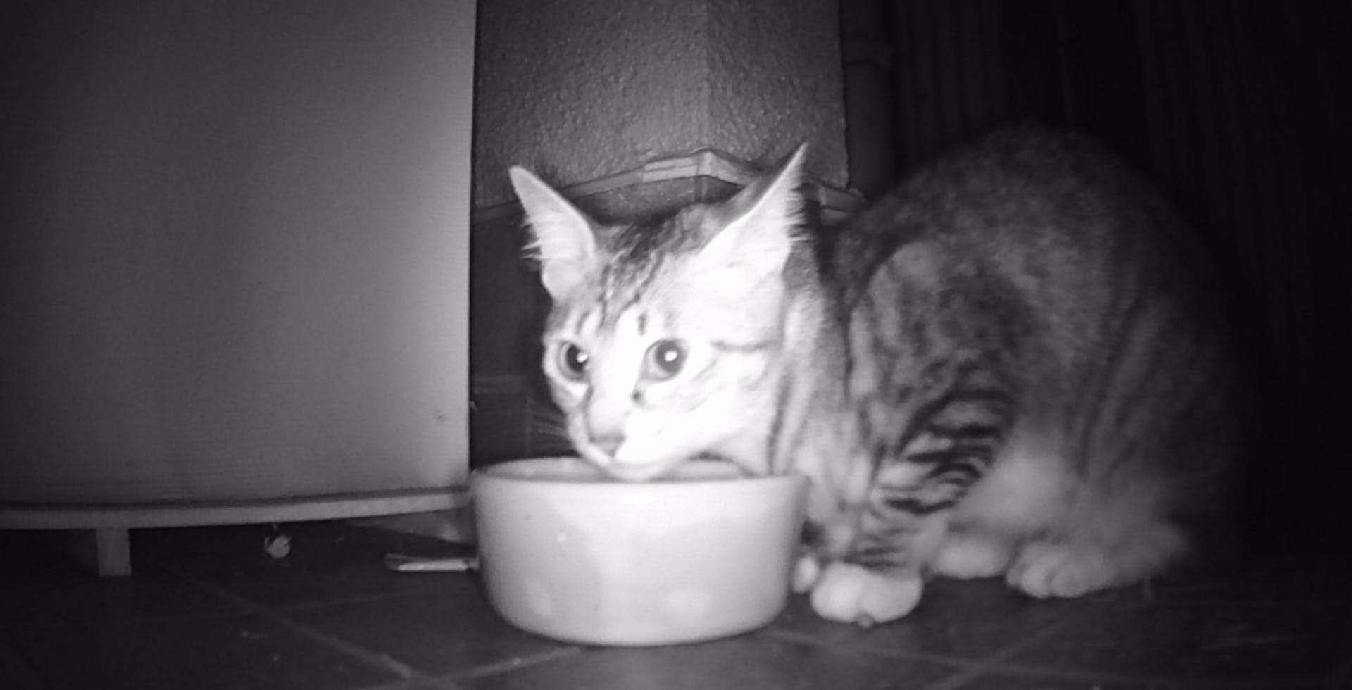 玄関前で深夜にこっそりエサを食べています…笑