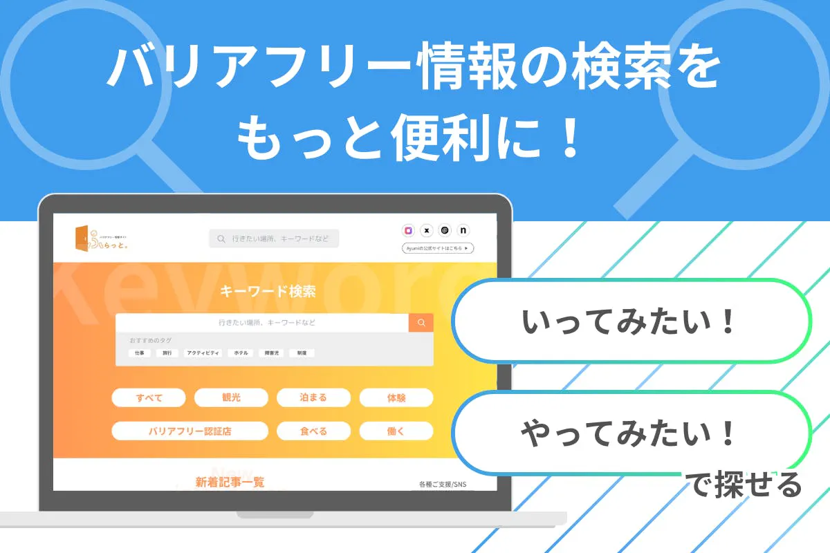 ※一般社団法人Ayumiが運営する「ふらっと。〜バリアフリー情報サイト〜」が検索しても出てこないという方が万が一いましたら、以下の検索キーワードでAyumiが運営しているサイトが出てきますので、そちらから表示されるサイトをクリックしてご利用ください。定期的に新着情報が更新されるのでブックマークを推奨いたします。