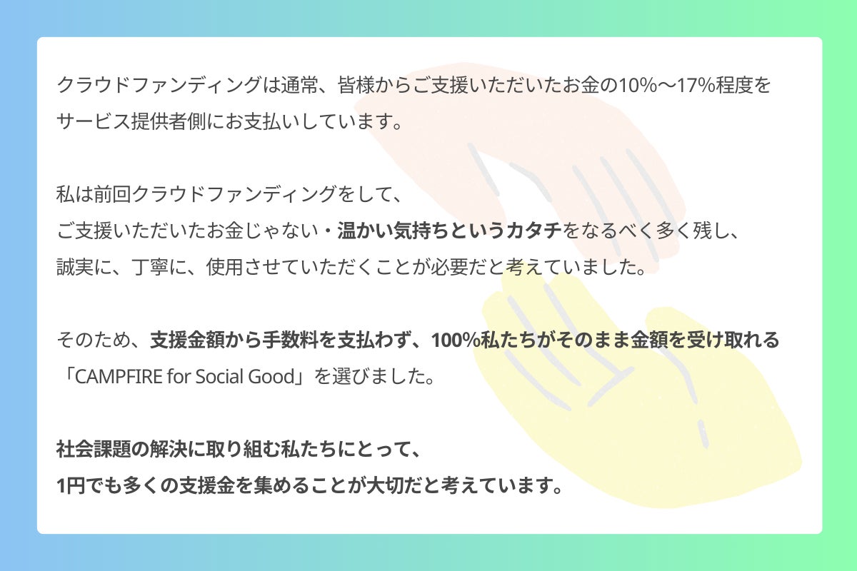 1.何故、CAMPFIRE for Social Goodを選んだのか?