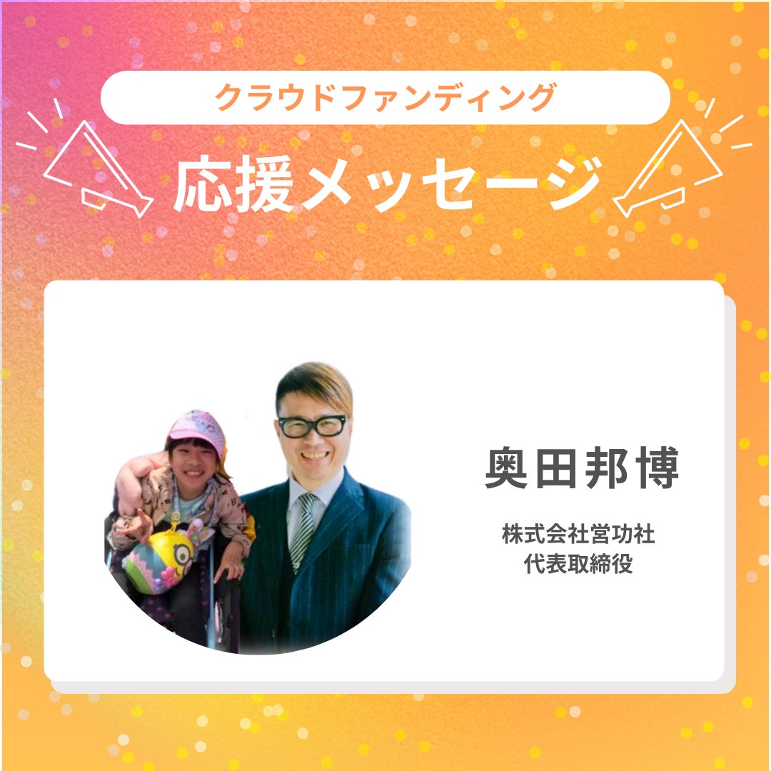 今回のこのチャレンジに心の底から最大限の応援をします。これを機に多くの健常者にも障害者(児)とその家族の世界観を知っていただける事でしょう。