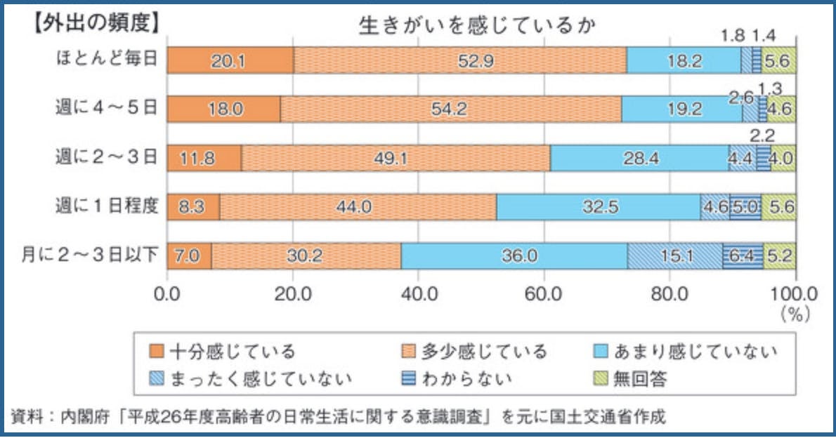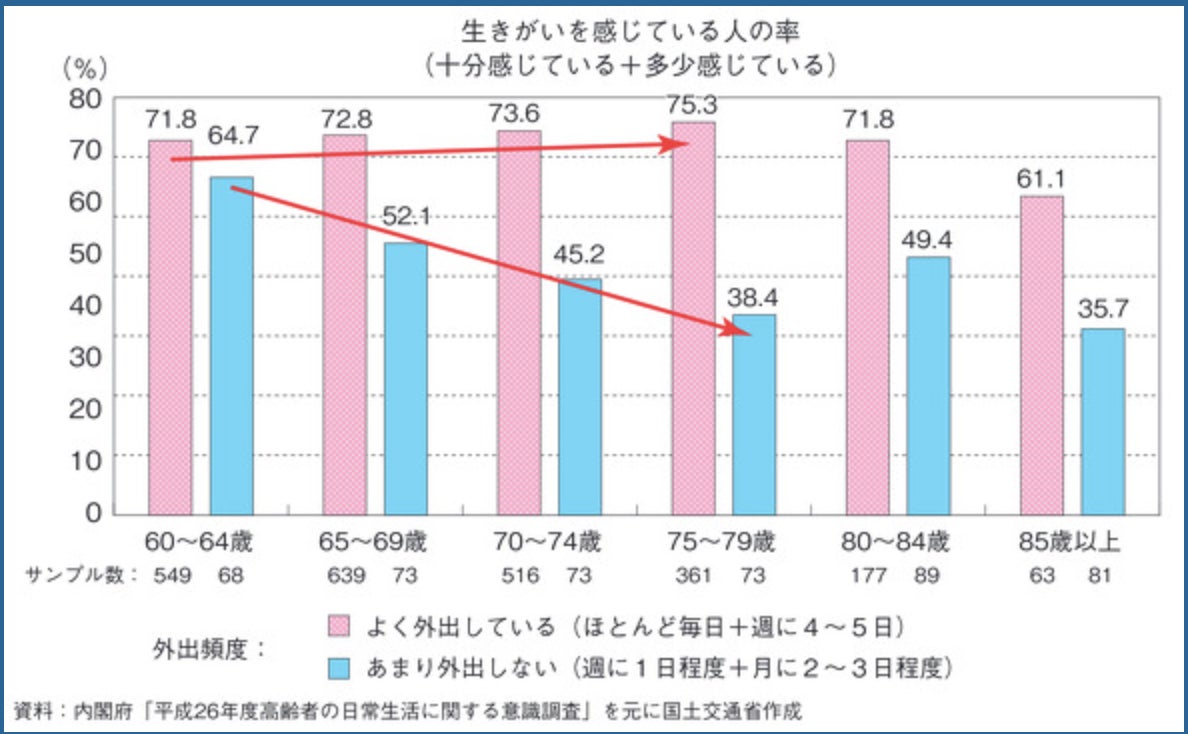 今日は表題にもある外出と生きがいの相関関係の話です。