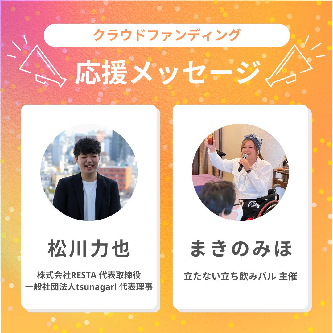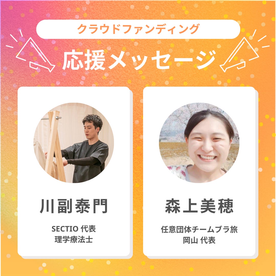 クラウドファンディング開始から9日後の支援状況支援者数:103人支援額:1,252,000円達成率:62%2024年12月15日19時時点の総シェア数Facebook:50X:35Instagram:28合計:113皆さんのご支援・ご協力のおかげで10日経たずに62パーセントをを超えています!応援・支援してくださって本当にありがとうございます。。。!本日はこの方々から応援メッセージをもらっていますので、ご紹介したいと思います^^SECTIO代表 / 理学療法士川副 泰門(かわぞえ たいと)Ayumiさんの活動は「障害当事者とリハビリテーションを繋ぐ架け橋になる」と思っています。リハビリテーションとは自己実現であり、自分の“なりたい”や“ありたい”を叶えるための概念です。しかし、体や心に障害を抱えることで、気持ちが沈み、閉鎖的になり、明るい未来に向けての歩みを止めてしまう方をたくさん見てきました。ここに必要なのは、間違いなく、ここに明るい未来があるよと示す「選択肢」です。私は理学療法士ですが、リハビリテーションに従事する者として、この選択肢をいかにたくさん持てるかを重要視しています。Ayumiさんが手がける「ふらっと。〜バリアフリー情報サイト〜」は、その選択肢を最大限広げることができる可能性が詰まったプラットフォームだと思います。私達、医療従事者こそ、このサイトの発展に寄与し、日々関わるお客様への情報提供として、活用すべきではないでしょうか。暗いニュースが飛び交う昨今、自己都合ではなく他者への配慮を優先し、明るい社会にするための挑戦を皆さんで支えていきましょう!任意団体チームブラ旅 岡山代表 森上美穂山口代表にいつも勇気をいただいています。『Ayumi』の挑戦を応援することであなたの未来の歩みが変化しますよ。バリアフリー情報は、人生の先行投資です。情報格差がない、オールハッピーな未来を私も目指しています!先頭に立って頑張られている山口代表を応援しています!