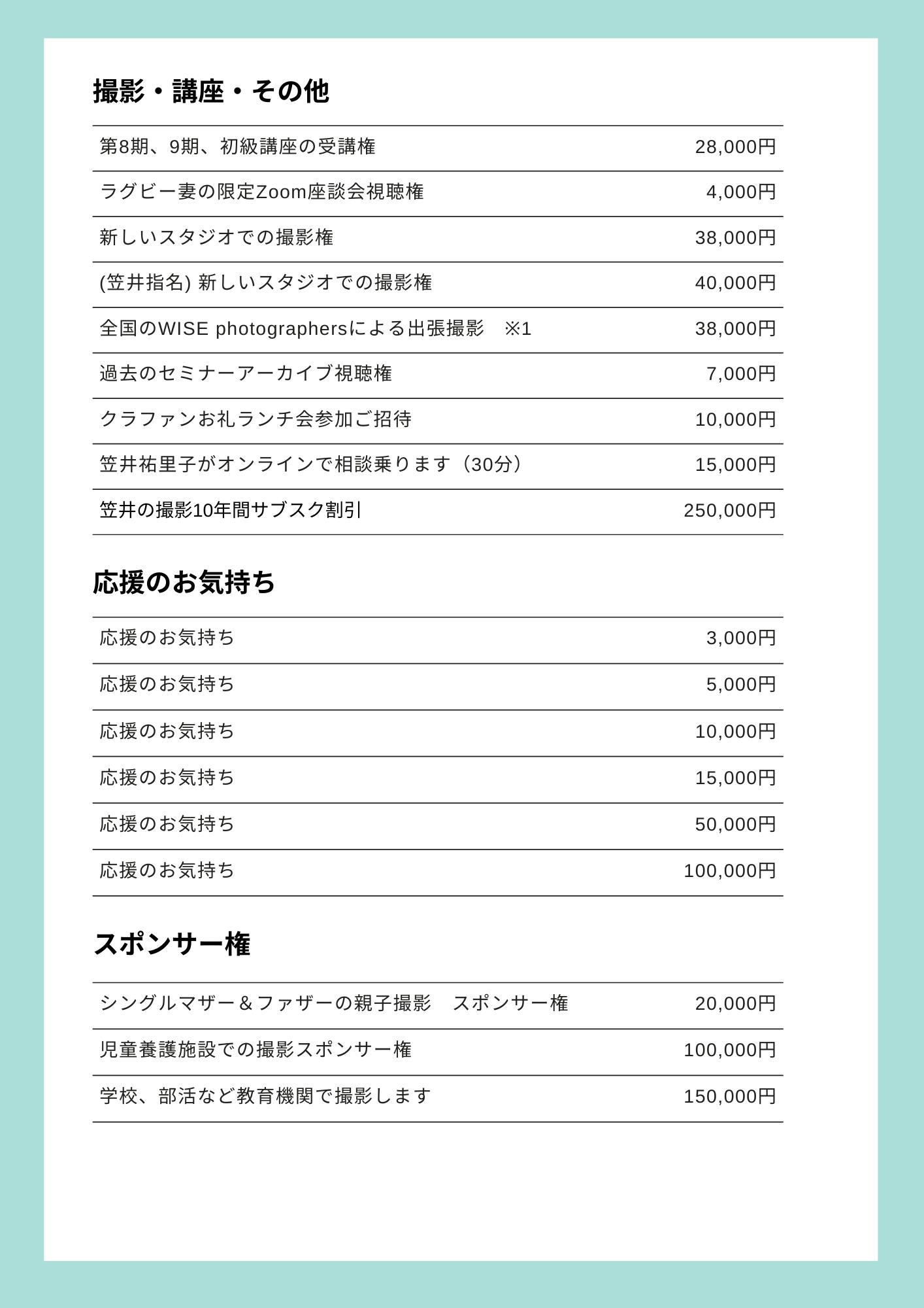 2025/01/12 16:29・クラファン終了まで残り3日となりました。これまでにご支援いただいた130人の皆様に心より感謝申し上げます。さて、今日はクラファン開始当初に少しだけ触れた「スタジオ一店舗目となる物件選びの際に出来た、今後一生大切にしていきたいストーリー」のお話を。WISEのスタジオ一店舗目は、自由が丘にかまえることになりました。一店舗目はもし出来ることならば商店街の中の、地域の方々に愛されるお店にしたいと思っていました。結果的に商店街ではありませんが都心でありながら古くから住む方々が多く、お年寄りも若者も子供たちも居心地良く暮らす街全体が商店街のような温かさの残る自由が丘という地に一店舗目をオープンできる事、大変嬉しく思っています。縁がありそうでなかった自由が丘という街に出店すること。ここにも私が一生大切にしていきたいストーリーがあります。このストーリーの始まりは7年前まで遡ります。7年前、私はその建物のとある一室に遊びに行っていました。私の親友であり未来のビジネスパートナーが、その建物の2階の小さな一室に事務所をかまえていたのです。写真の専門学校に通う30代の学生だった暇な私は仕事をする彼女の横でおやつを食べて待ち、終わったら一緒に夕飯を食べに街に繰り出したり。そんなふうに過ごす、私にとって居心地の良い場所でした。30歳をすぎてから突然0からスタートしてフォトグラファーになると言った時その突拍子もない話を真剣に聞いてくれる人や応援してくれる人はほとんどいない中でその親友だけは「あなたは絶対に良いフォトグラファーになる」と背中を押して応援してくれました。その後フォトグラファーになってすぐの頃に「私の事務所の下の階が空室みたいなんだけど、そこでスタジオをやったらどう?」と声をかけてくれたのも彼女でした。ワクワクしながら2人で内見をしたもののまだまだ駆け出しでお客様もついていなかった私は全然自信も力もなくて家賃が払えるとは到底思えなかったので「いつかここでスタジオをやることを夢の一つにするね」と彼女に約束しました。7年後の今、私はまさにその場所でフォトスタジオをやろうとしています。でもあの時いつも隣で励ましてくれていた親友は、もうこの世にはいません。寂しくて悔しくてたまらないけれど、これが現実。彼女は私にとって、二人でいたらなんでもできるような気がするし一緒にいたら安心できるひだまりのような人でした。初めてのことをする時はいつだって不安が勝りますが、彼女の存在をはっきり感じるあの場所でスタートを切れること。その巡り合わせの不思議な体験。そのことで、彼女が今でも私のことを応援し、守ってくれているんだと感じます。今回のスタジオ事業への一歩も、クラファンへの挑戦も、私にとっては勇気のいる選択でしたが、本当にやって良かったと心から思います。いつだって、どんなことだって、やらないよりやる方がいい。それが私のモットーです。あの場所でスタジオをやっている限り、彼女がずっと手を繋いでいてくれる気がする。親友を亡くして一人で仕事をするようになり孤独を感じることも多かったけど、クラファンをしたことでこんなにも沢山の人が実は応援してくれていたと気付けた。人生は本当に一度きり。明日がどうなるかなんて誰にもわからない。だから私は、死ぬまで自分の人生を思いっきり生きたいのです。彼女と考えて始めたスクールが、誰かにとって希望の光になってほしいのです。スタートを切るにあたって、最高の場所を選んだと思います。ストーリーがある限り、その場所はずっと輝き続けると私は信じています。残りの3日間。最後まで応援していただけると嬉しいです。そして私にとってひだまりのような場所にオープンする新しいフォトスタジオが完成したら、是非遊びにいらしてください。 もっと見る一度きりの人生、やりたいことをやり尽くせ。