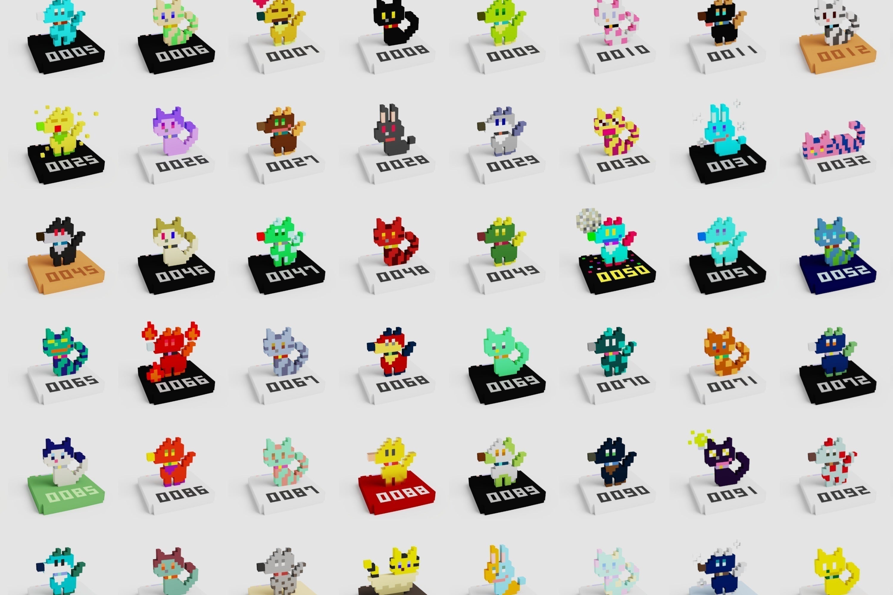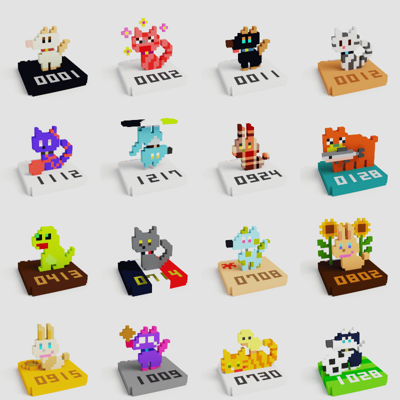 Lucky Animal Collection🍀は、幸せを運ぶ「ラッキーアニマル」をコンセプトに作られた、NFTアート作品集です。2Dドット絵が持つかわいらしさと、3Dモデルが持つ実在感、その両方の良いところをつめ込んだ2.5Dな世界観で作られるグラフィック作品になります。