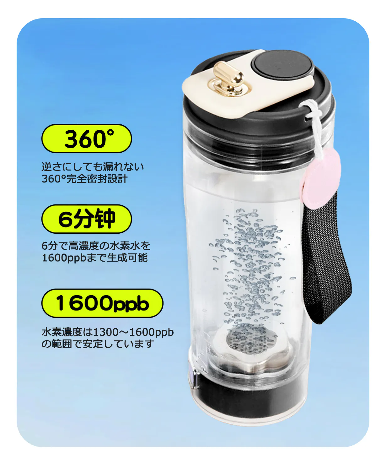 なんと、ポータブルなのに6分で1600ppb以上の高濃度水素水を生成できちゃうんです!すごくないですか?
