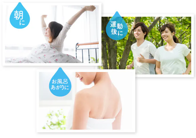 朝起きたとき、運動の前後、仕事や勉強中にも一杯。知らず知らずのうちに、こまめに水分補給する習慣が身につきますよ!