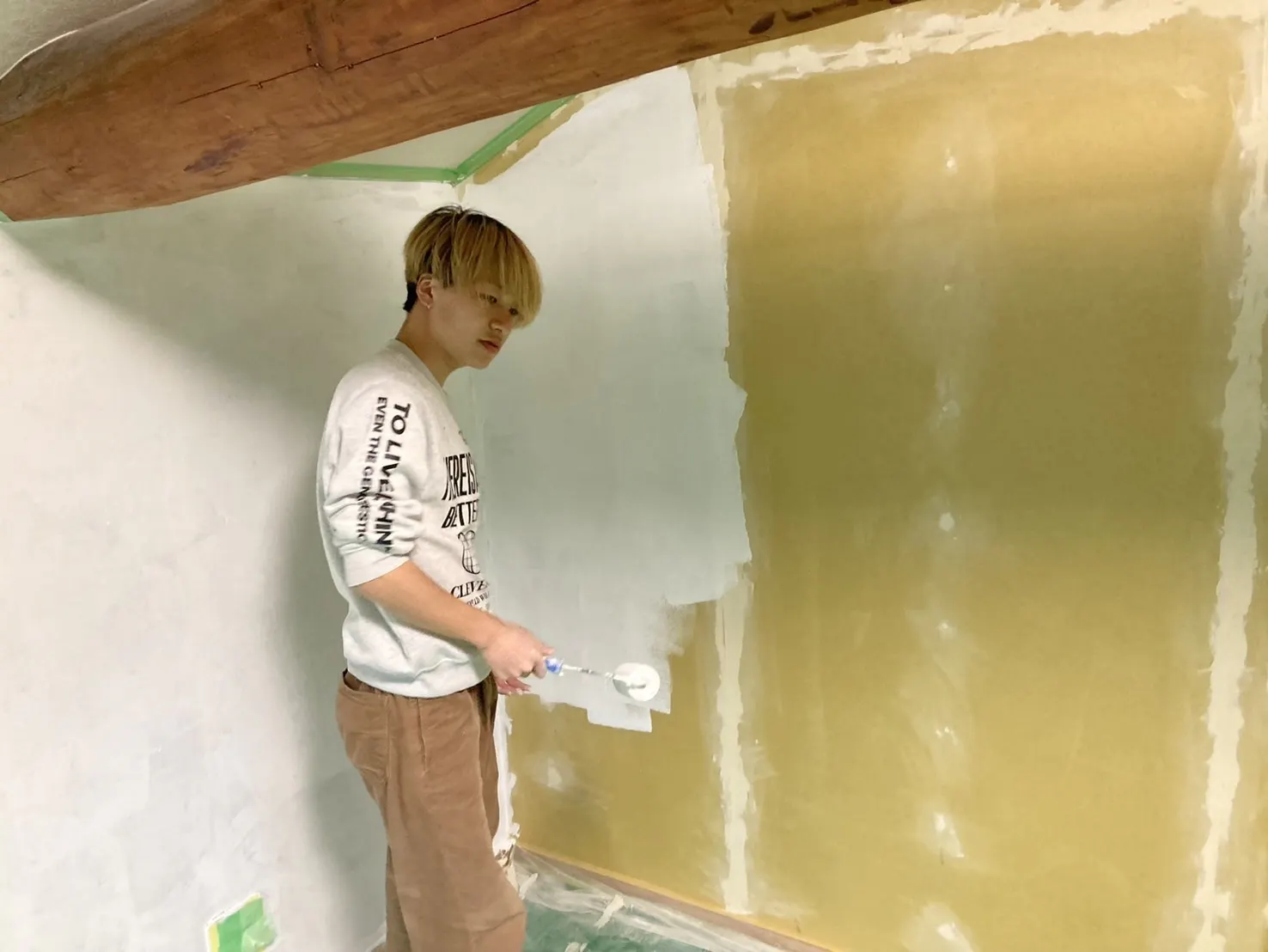 壁にペンキを塗りました。