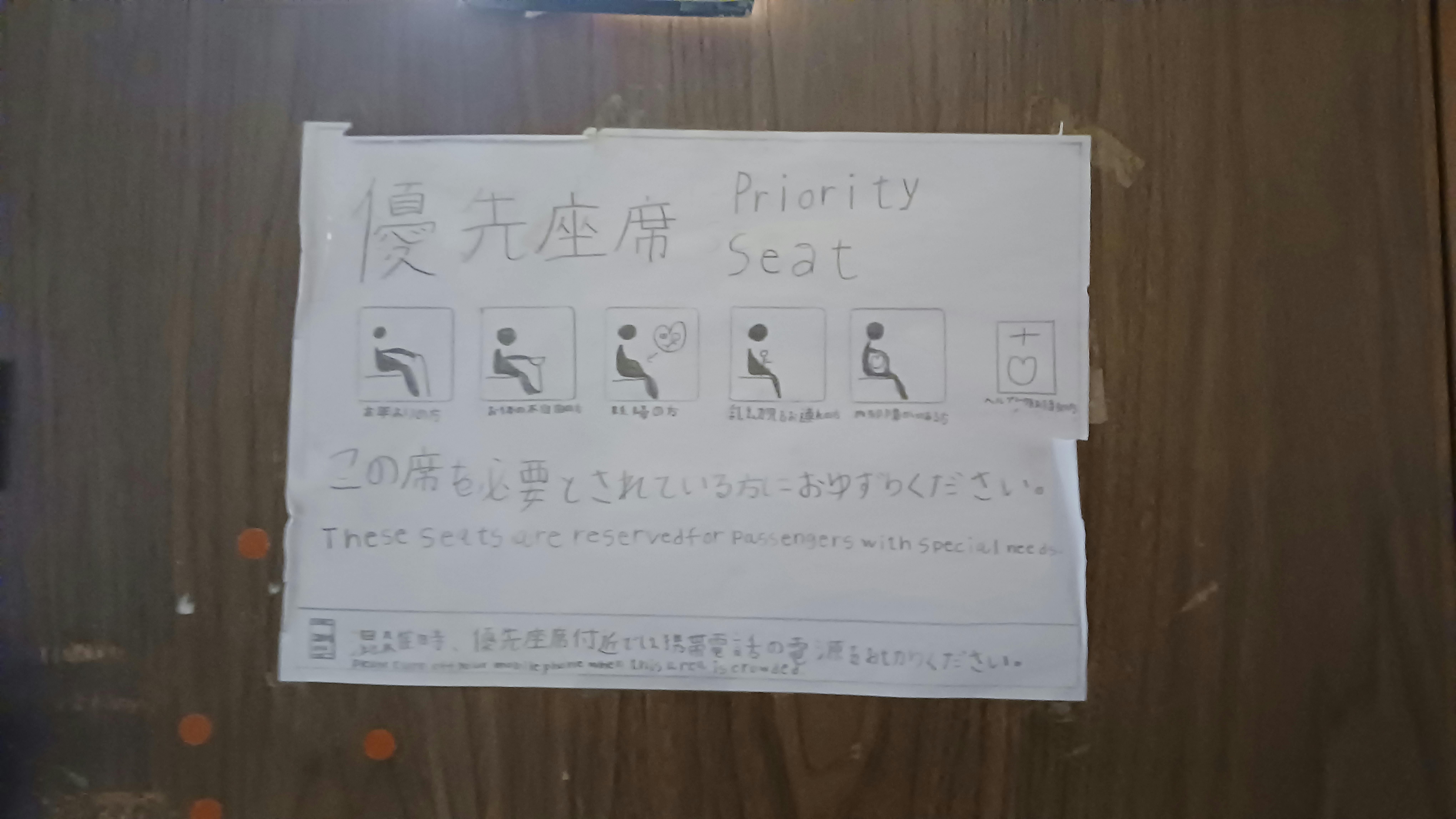 これは通っている子どもが作った電車やバスにある優先座席の張り紙を自作したものです。(ФωФ)