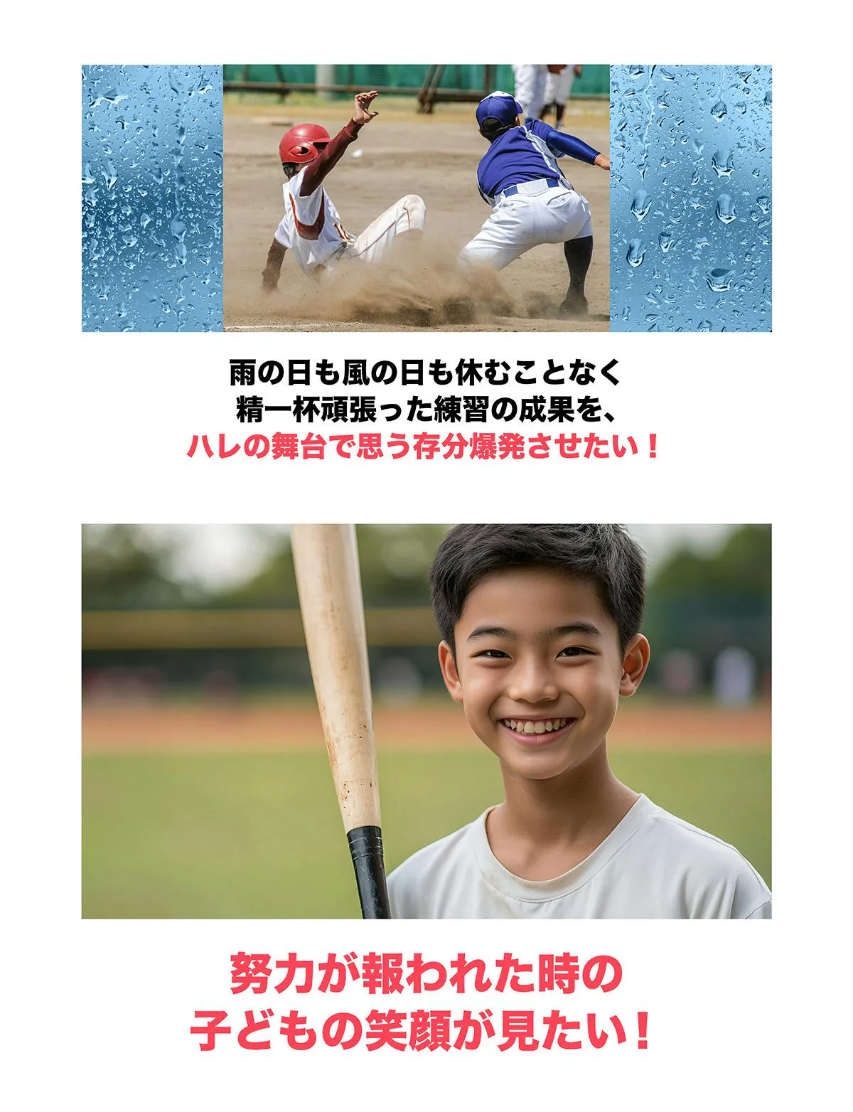 子どもが頑張っている姿や、試合で活躍している姿を!