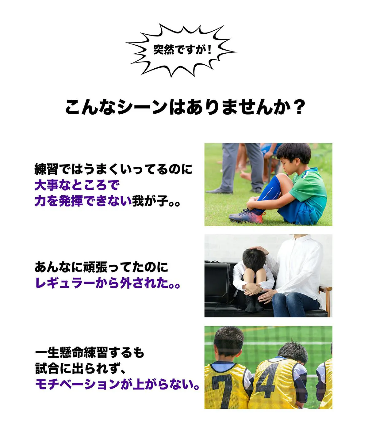 練習でうまくいかなかったり、試合で負けてしまって悔しかったりと
