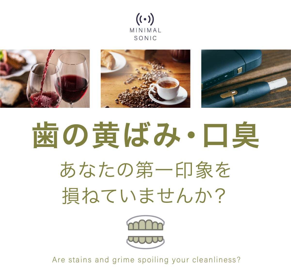 よく、鏡をみてください。あなたの口元は白く輝いていますか?口臭は大丈夫ですか?もっと魅力的になりたいと思いませんか?