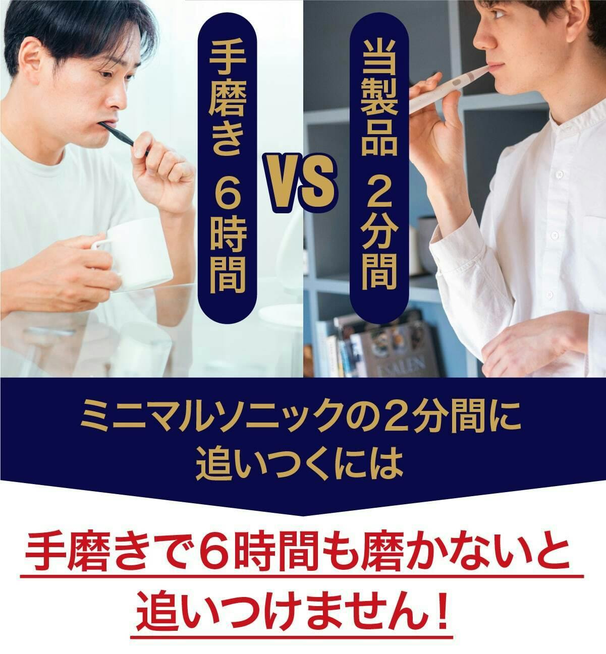 ミニマルソニックは2分間で44,000回磨けますが、手磨きで44,000回磨くには6.1時間も必要です!圧倒的な時短&効率化&生産性アップを実現するミニマルソニックを是非、お試し下さい!